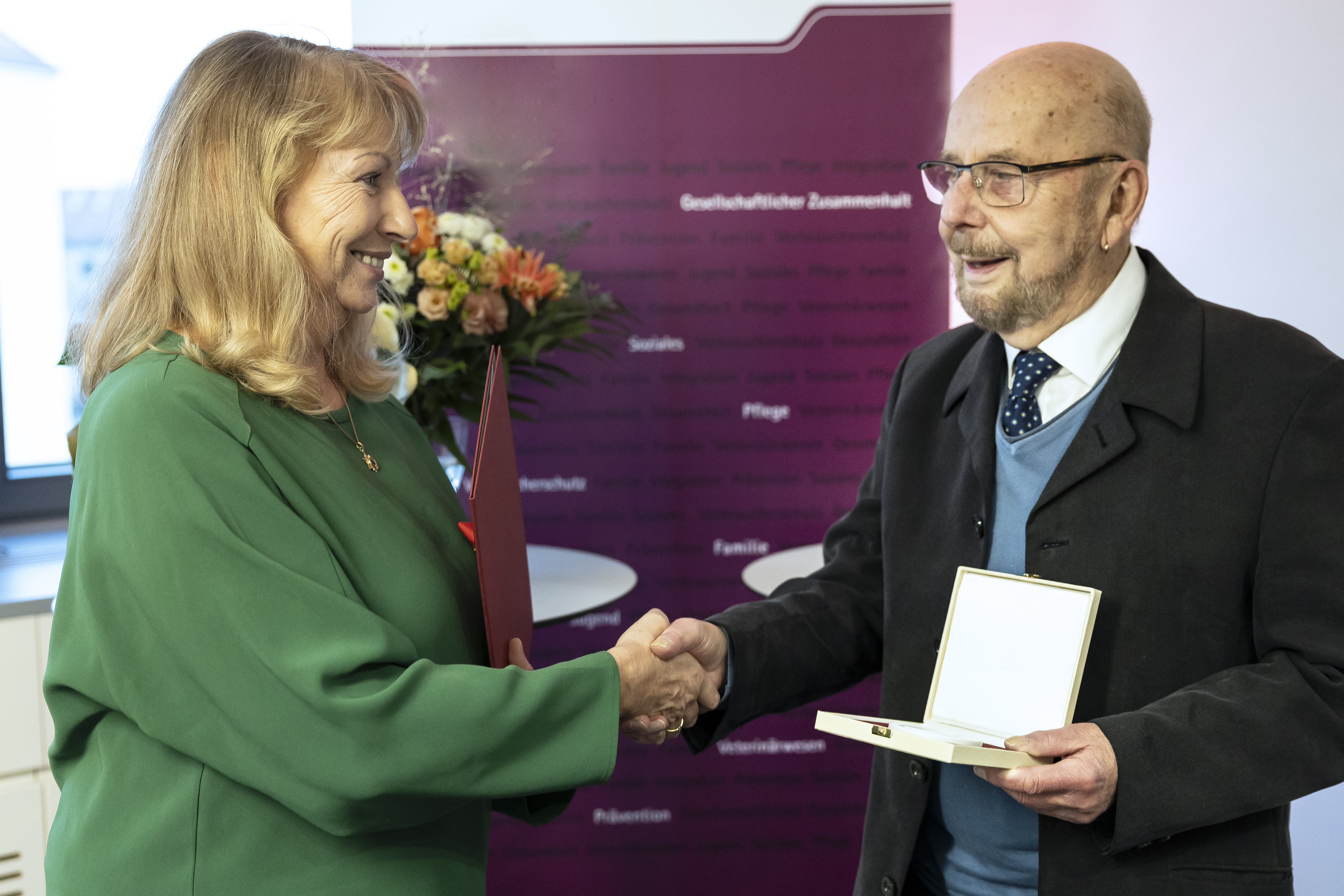 Staatsministerin Petra Köpping verleiht die Ehrenmedaille für herausragende Leistungen im Kampf gegen HIV und Aids an Dr. Eckehard Hütter