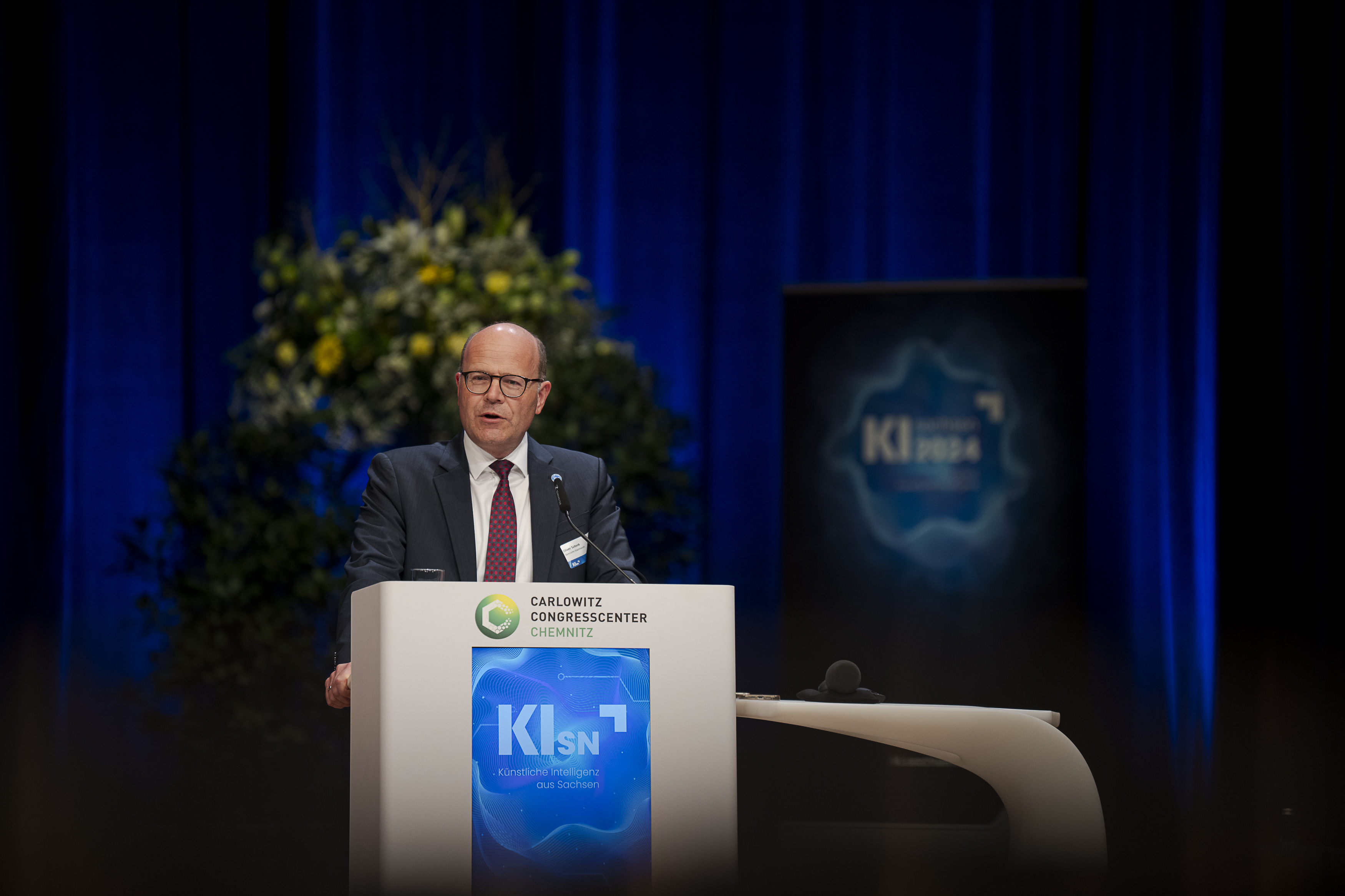 Staatsminister Oliver Schenk spricht zu Beginn des ersten Kongresstages ein Grußwort.