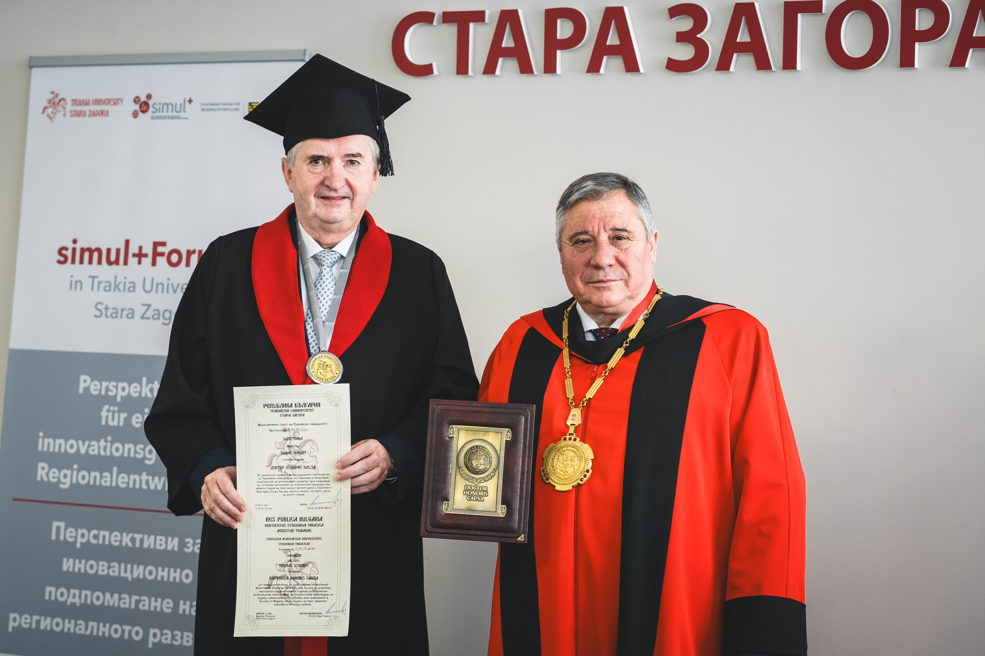Foto: Staatsminister Thomas Schmidt gemeinsam mit dem Rektor der Trakischen Universität, Professor Dobri Yarkov