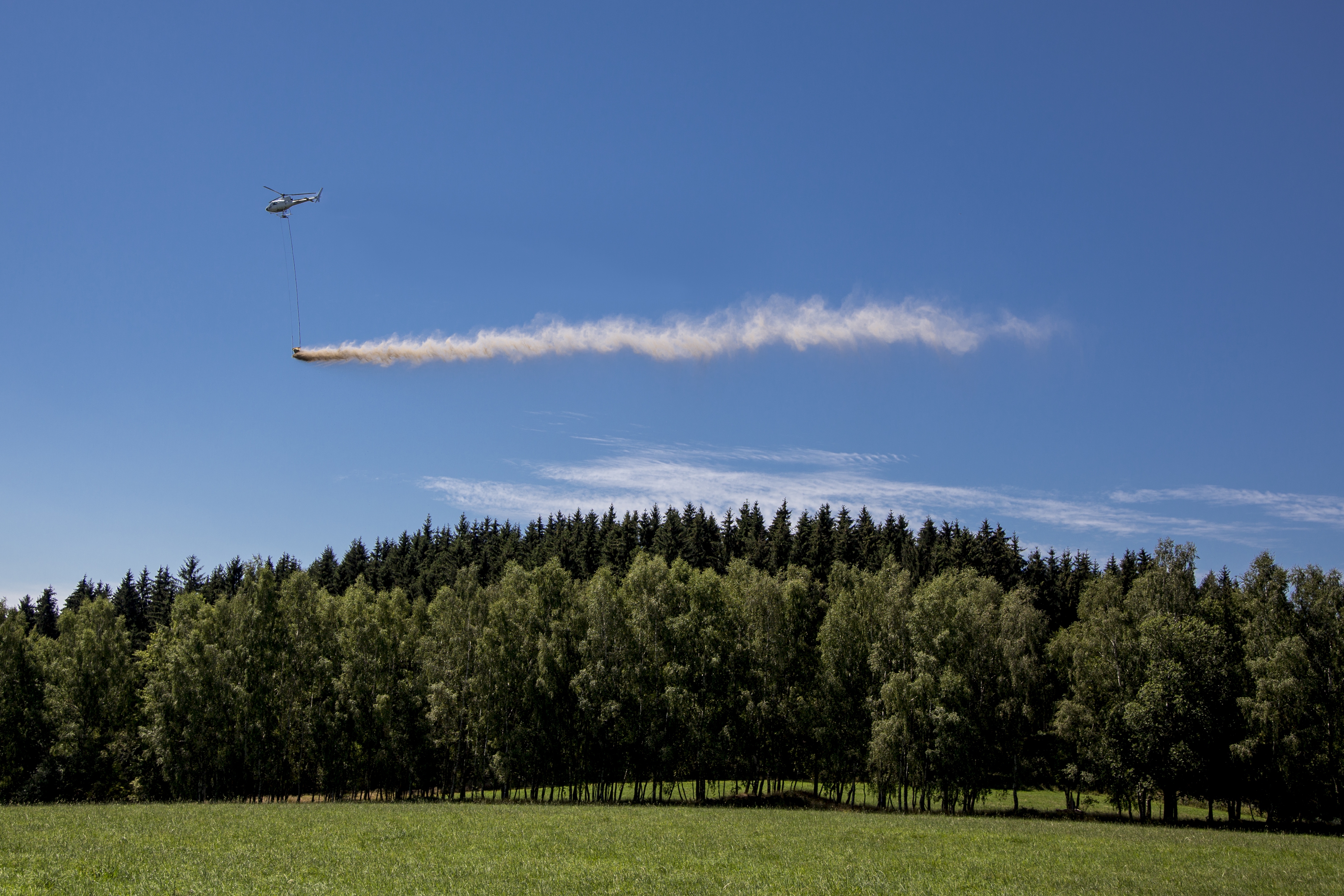 Bodenschutzkalkung des sächsischen Waldes mit dem Helikopter (© Felix R. Krull)