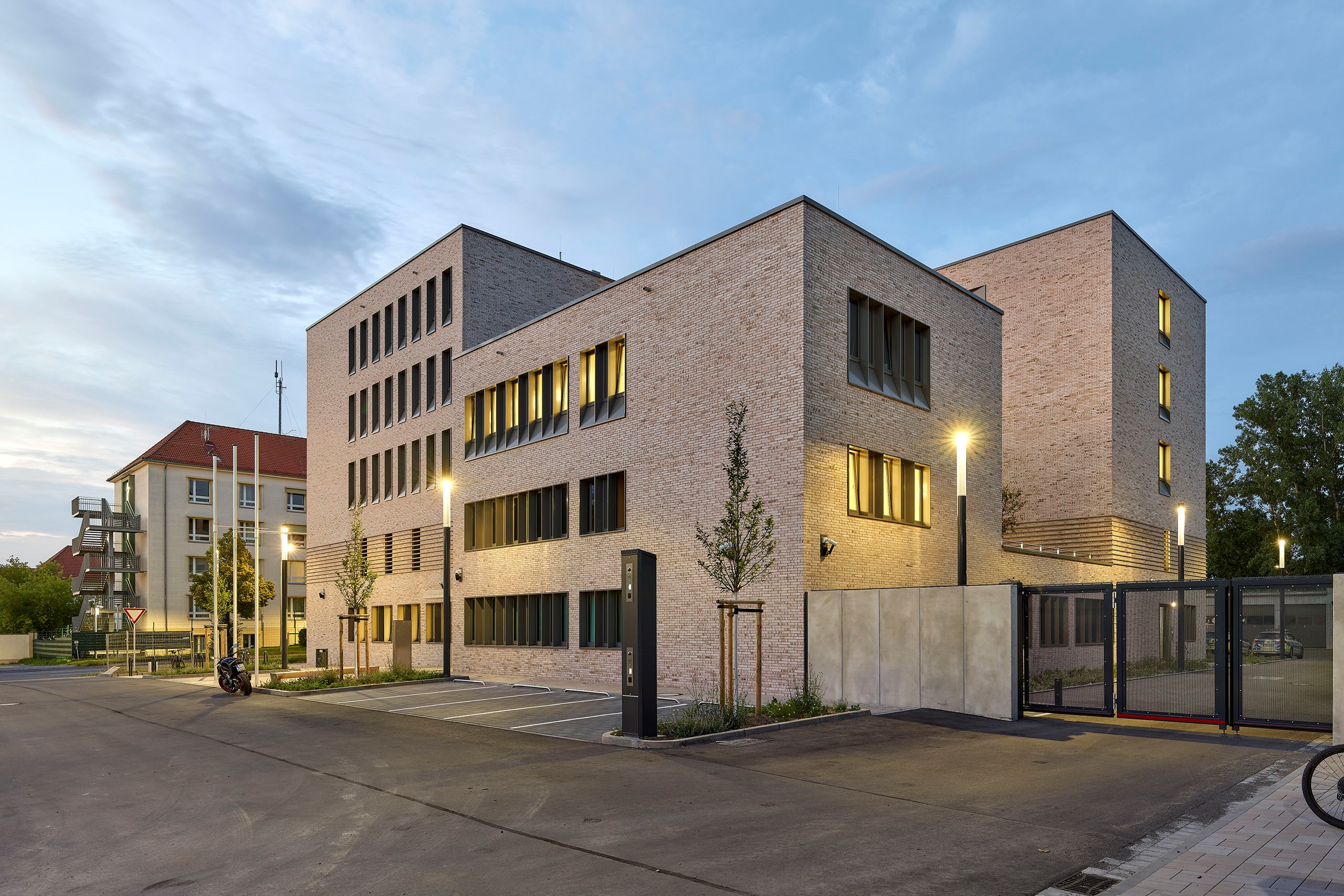 Polizeirevier Leipzig-Nord Außenansicht am Abend (© Michael Moser)