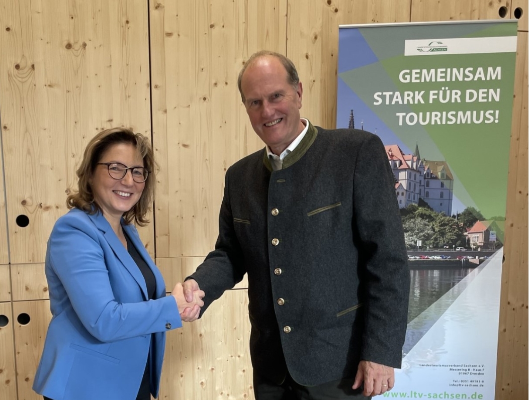 Foto: Andrea Kis, Direktorin des Landestourismusverband Sachsen, und Utz Hempfling, Geschäftsführer von Sachsenforst, unterzeichneten die gemeinsame Kooperationsvereinbarung.