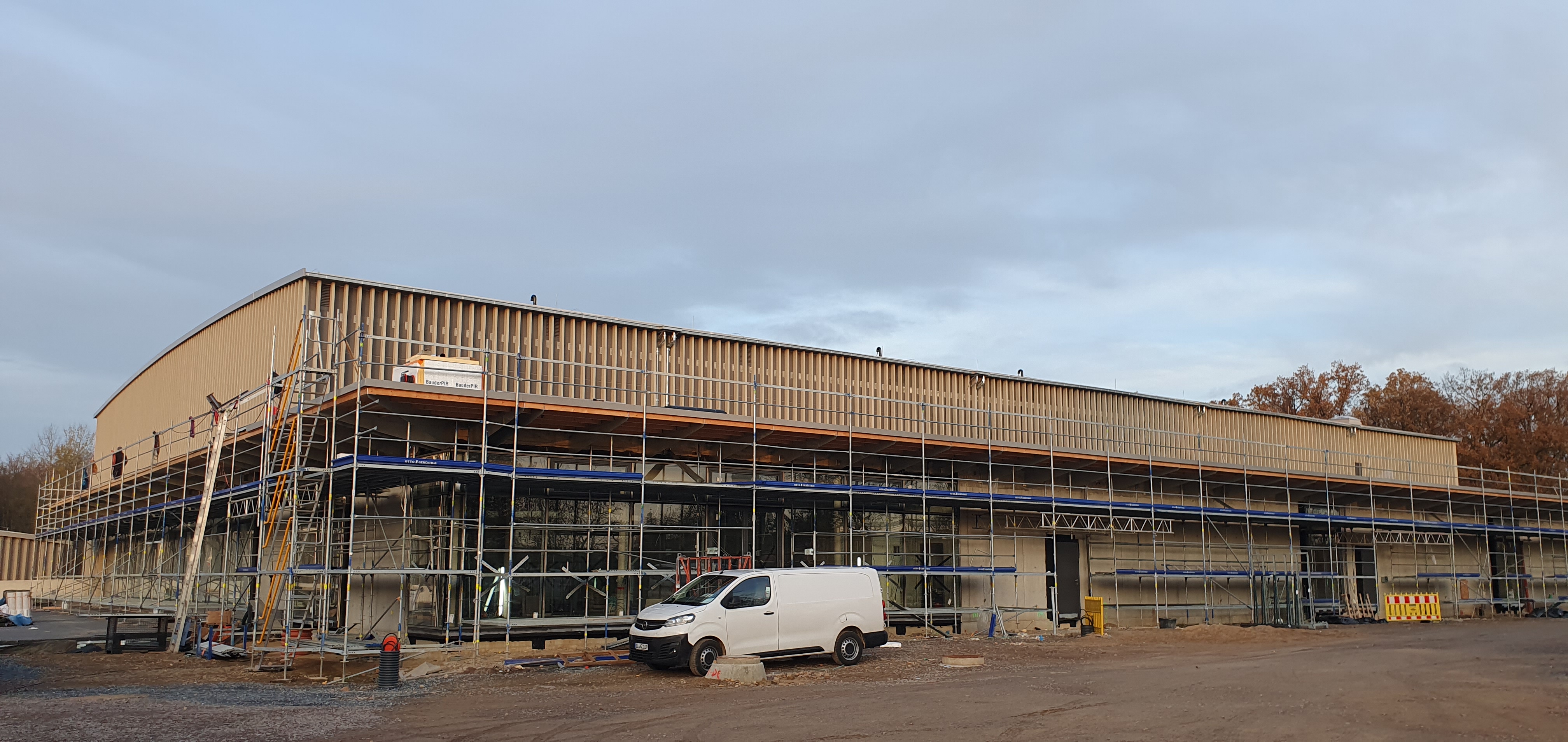 Außenaufnahme der neuen Multifunktionsreithalle des Landgestütes Moritzburg