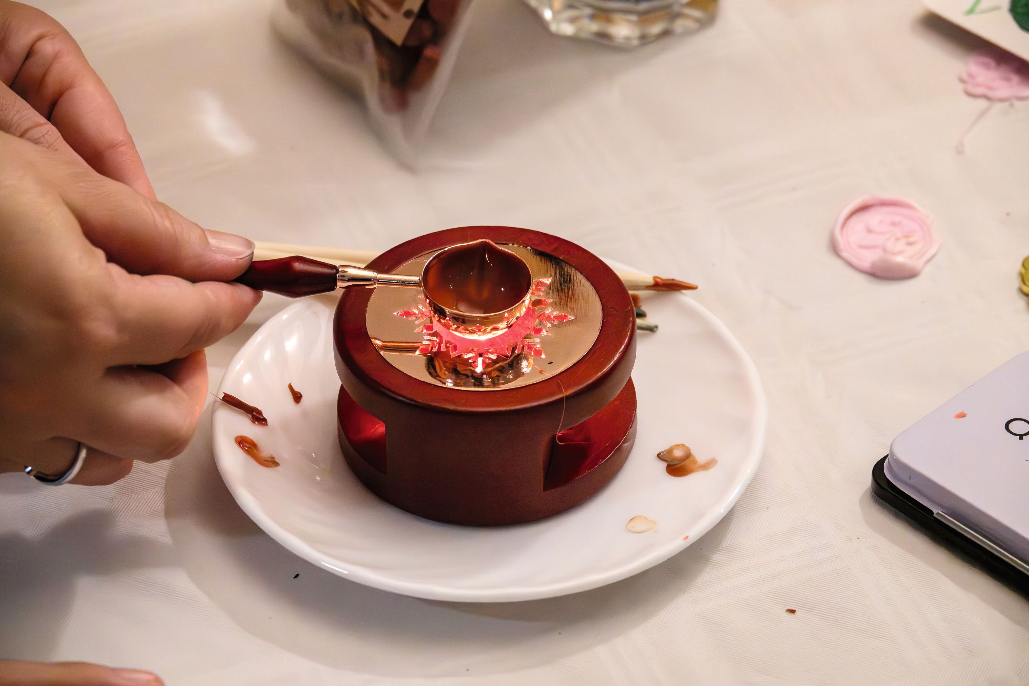 Foto: Siegelwachs und Tintenfass - Mitmachstation zum Basteln von Siegeln und Lesezeichen in der Bibliothek des Instituts für Sächsische Geschichte und Volkskunde