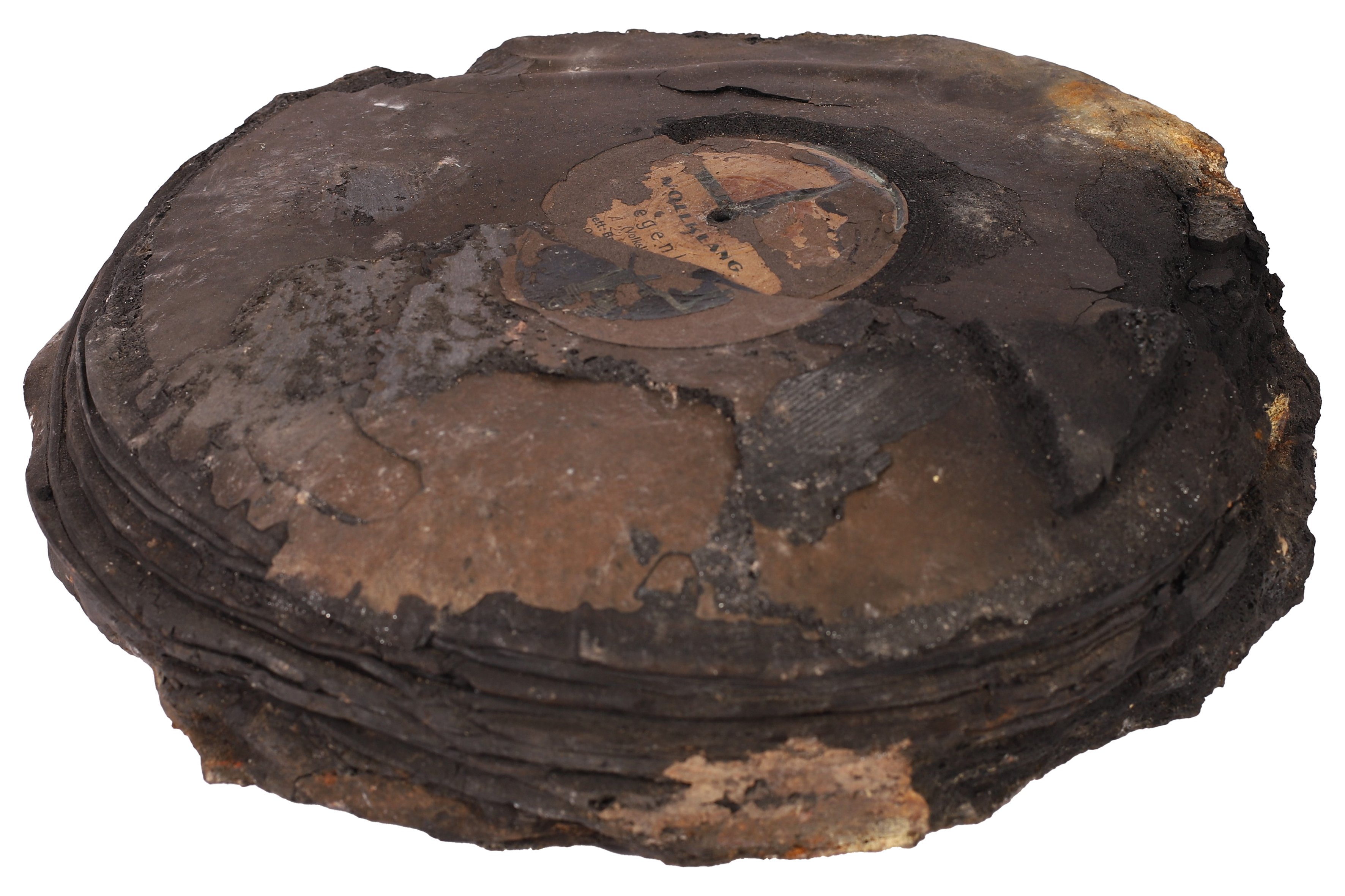 Ineinander geschmolzene Schallplatten aus der kriegszerstörten Gaststätte „Goldener Anker“ in der Chemnitzer Johannisvorstadt.
