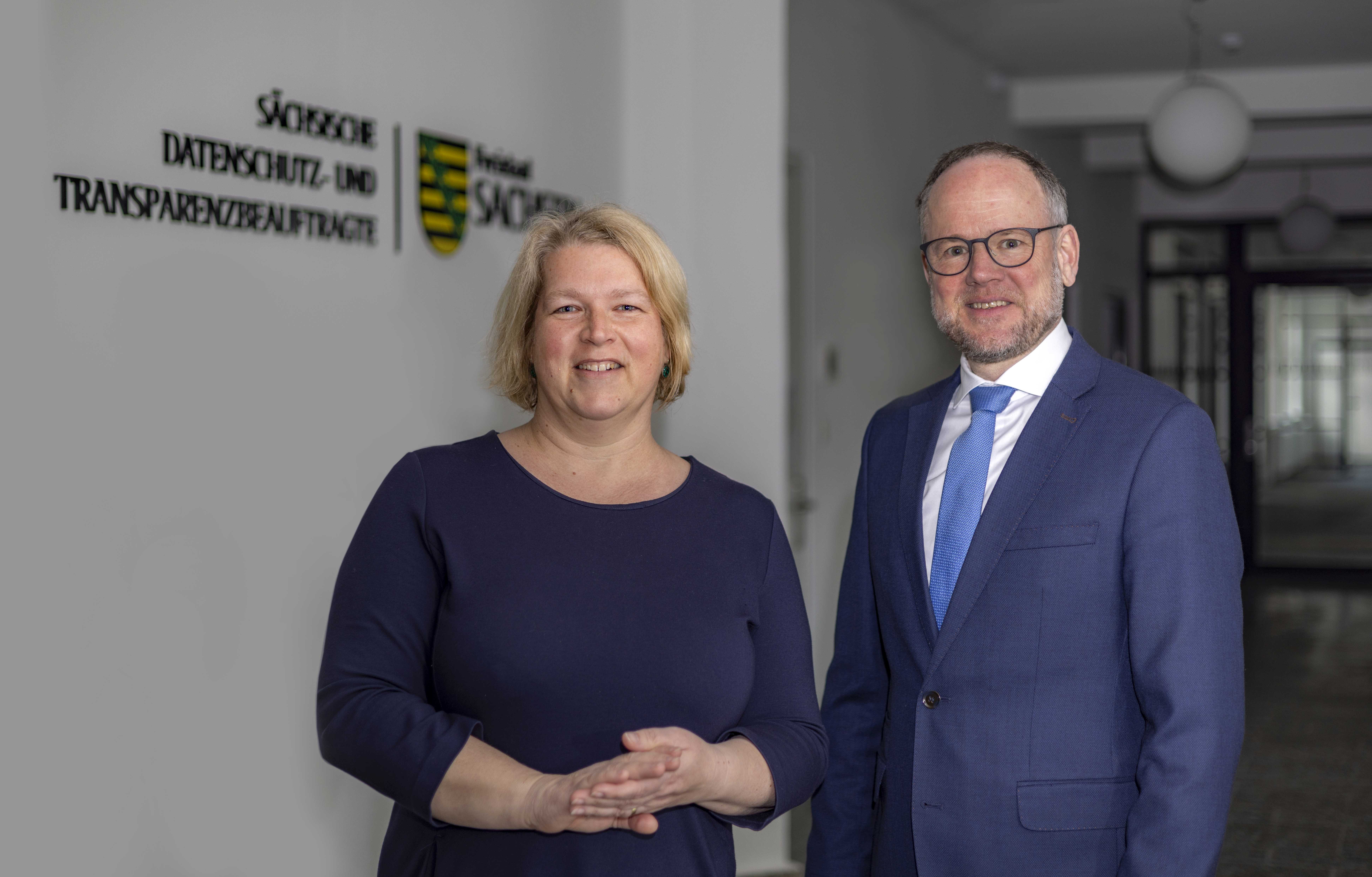 Foto: Übergabe der neuen Diensträume von Oliver Gaber (Kaufmännischer Geschäftsführer SIB) an Dr. Juliane Hundert (Sächsische Datenschutz- und Transparenzbeauftragte)