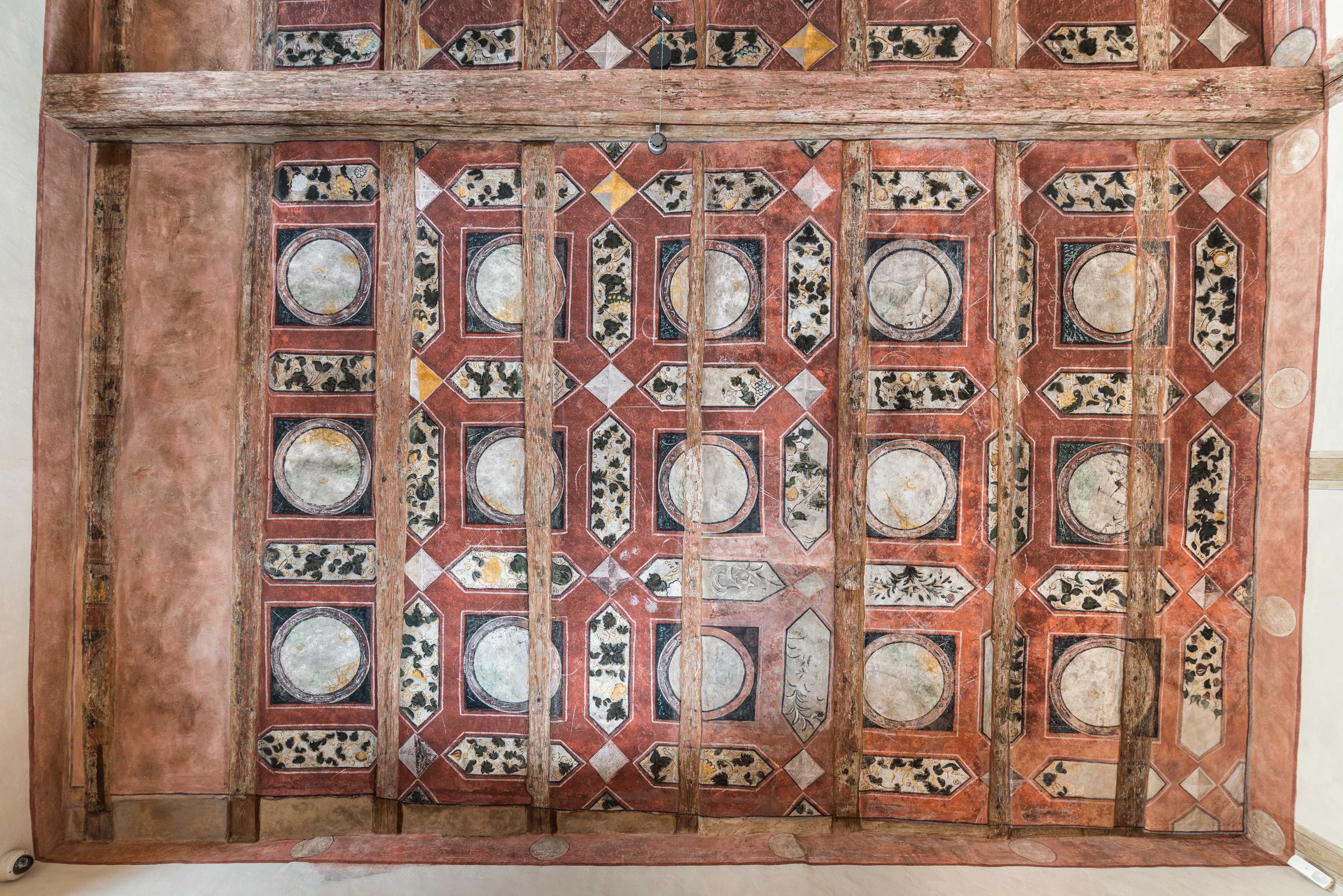 Foto: Schloss Rochlitz, bemalte Lehmwickeldecke in der Roten Stube im Fürstenhaus