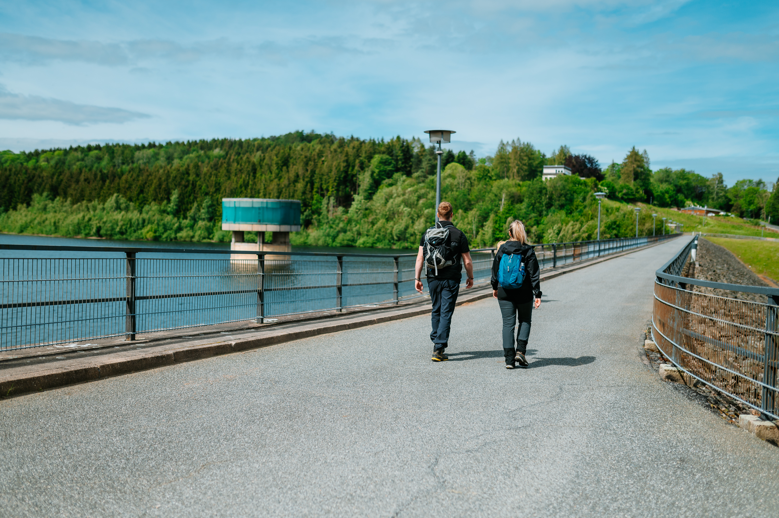 Weg über die Dammkrone der 2024 noch gefüllten Talsperre Lichtenberg