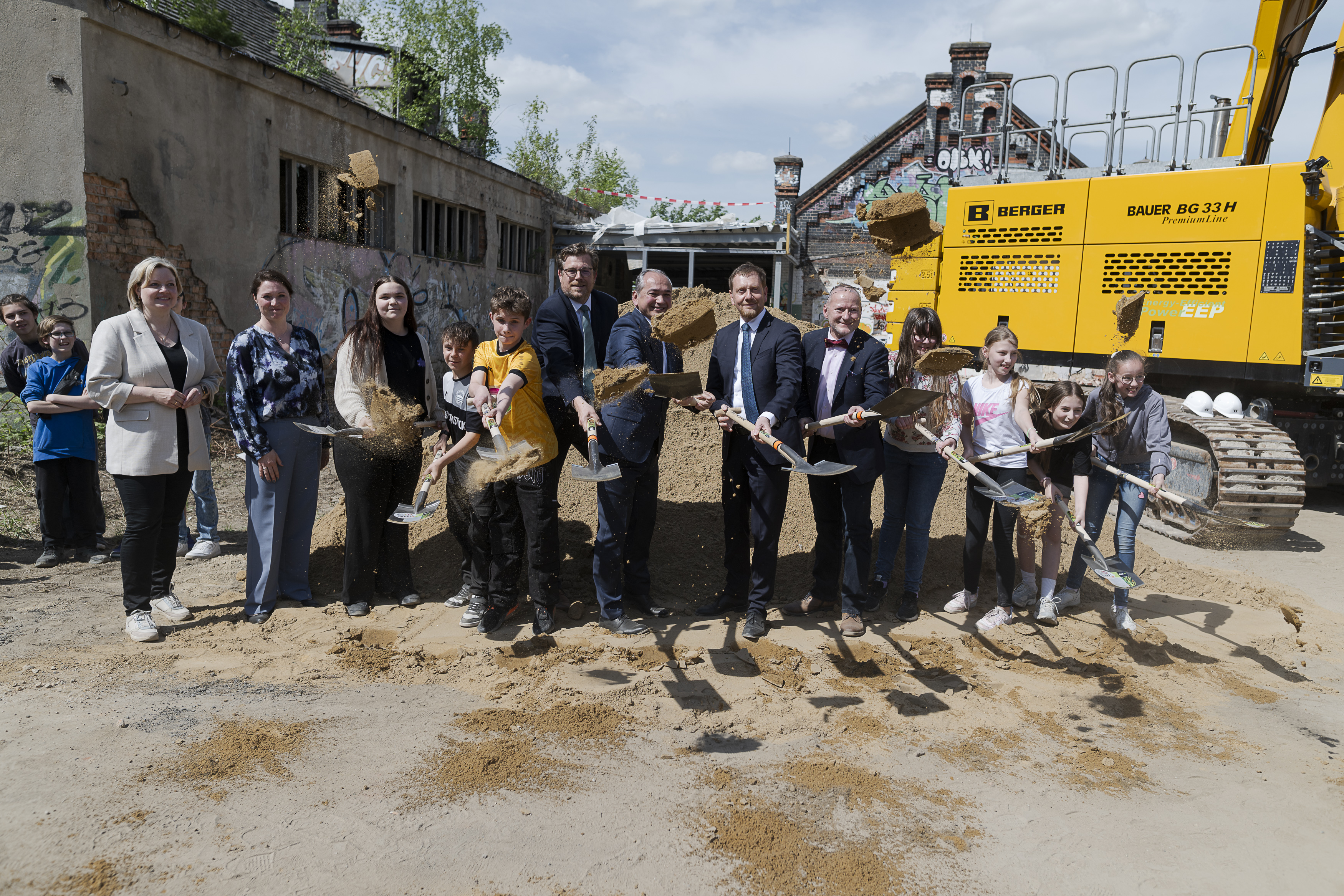 Feierlicher Spatenstich der neuen Oberschule in Görlitz mit Oberbürgermeister Octavian Ursu und Ministerpräsident Michael Kretschmer