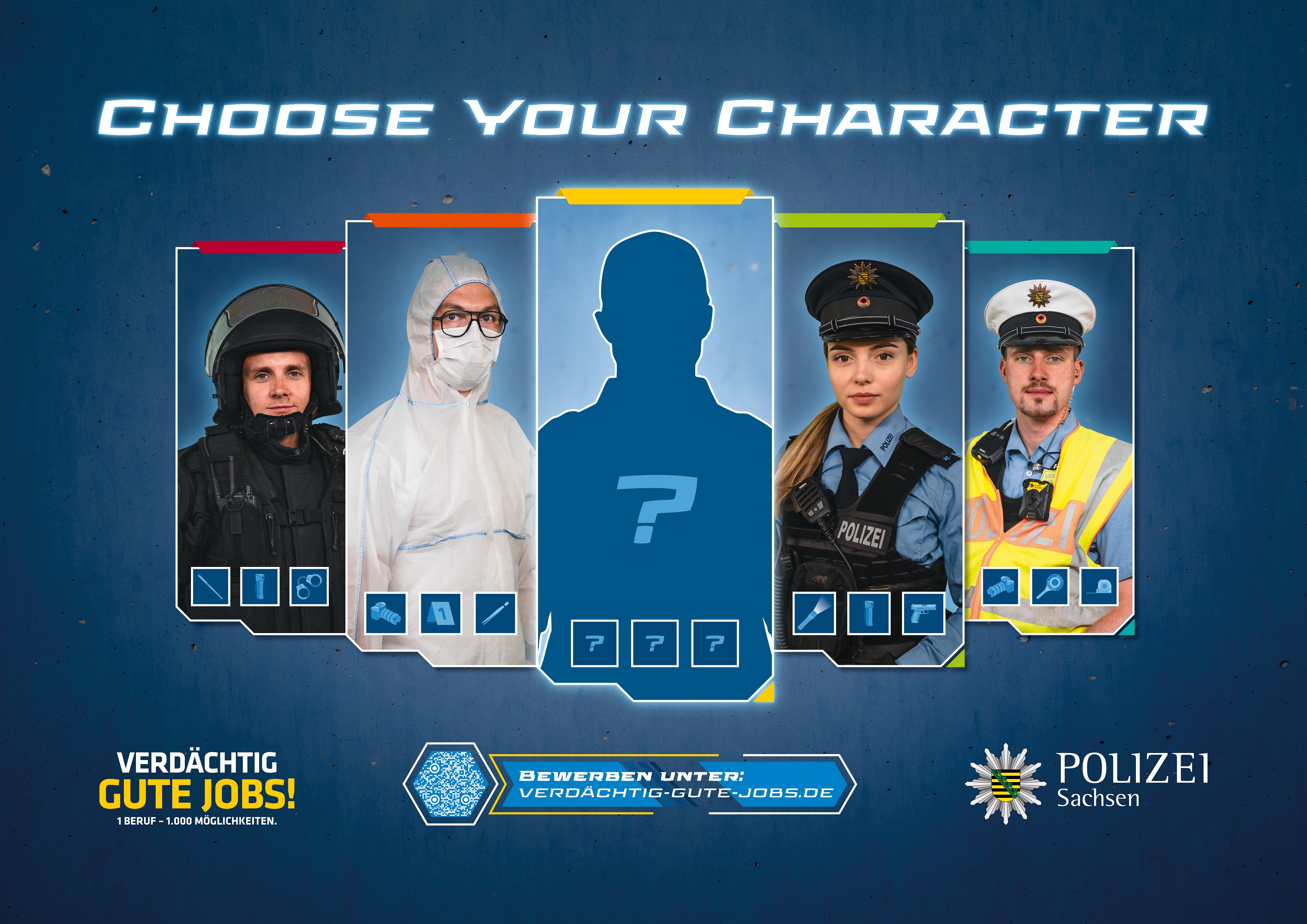 Nachwuchskampagne der Polizei Sachsen Verdächtig gute Jobs: Choose your character!