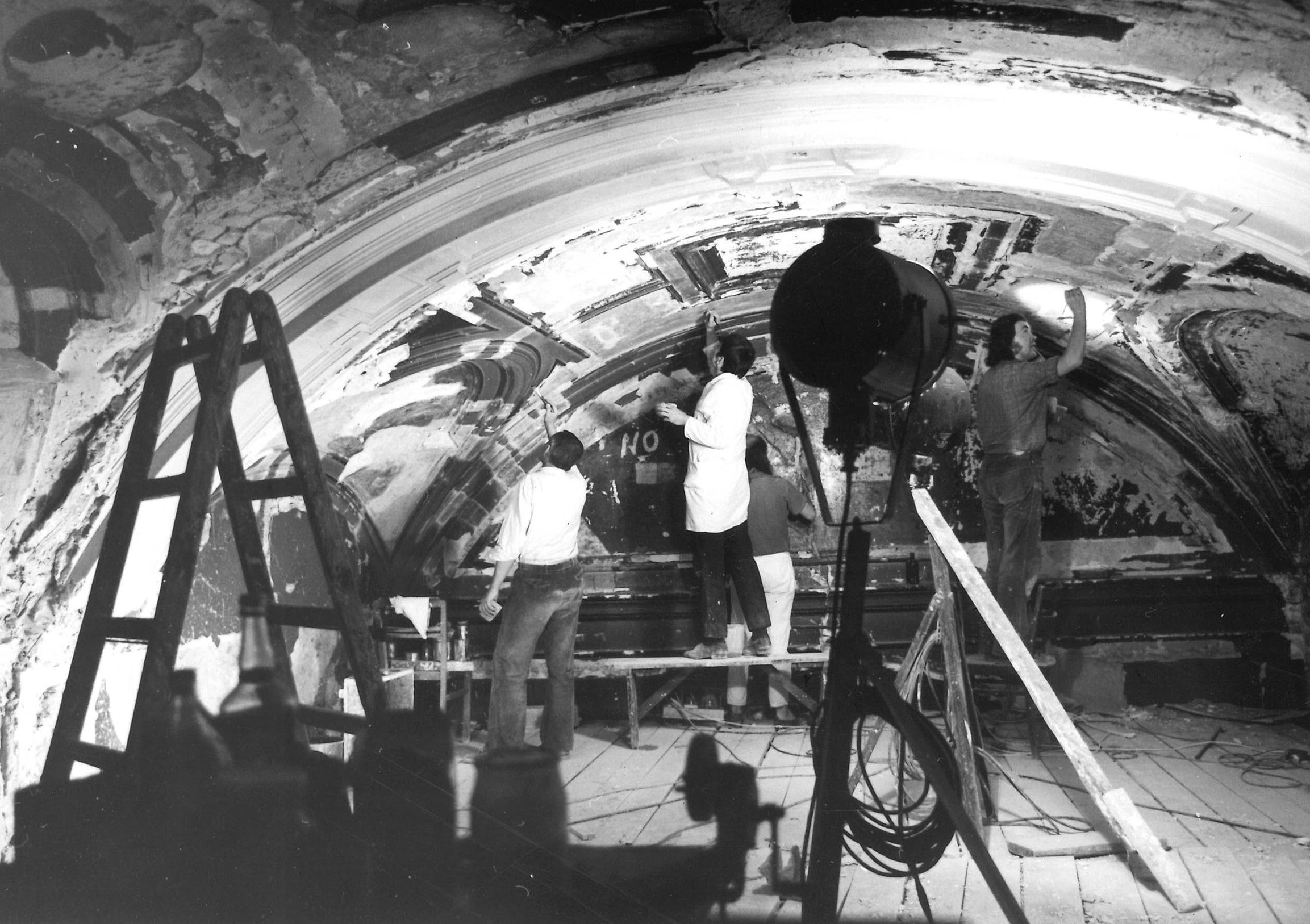 Dresden, Semperoper, Wiederaufbau, Ausmalungen der Decke, um 1985 (© Landesamt für Denkmalpflege Sachsen, Lucas Müller)