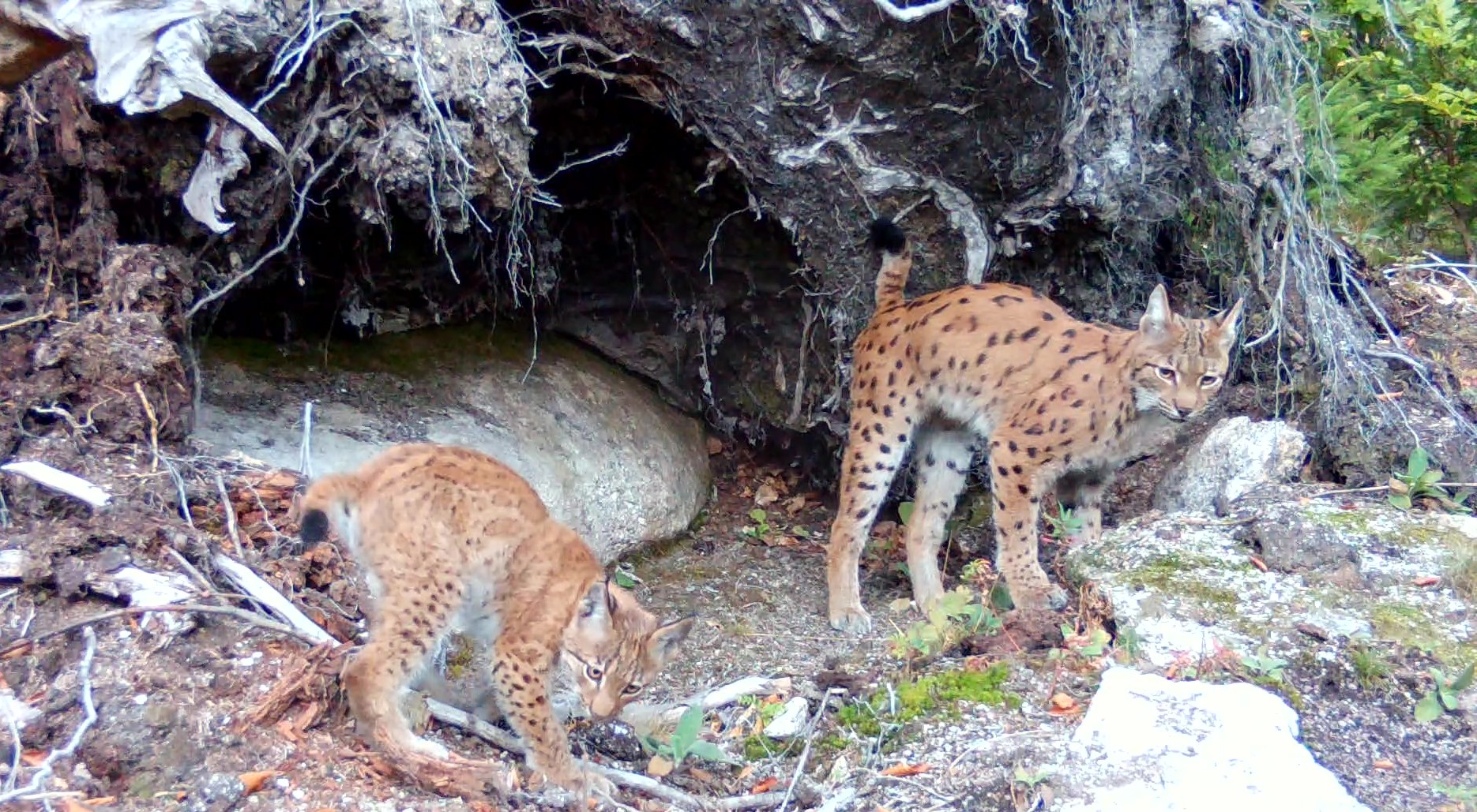 Foto: Luchskatze Alva mit einem ihrer beiden Jungtiere