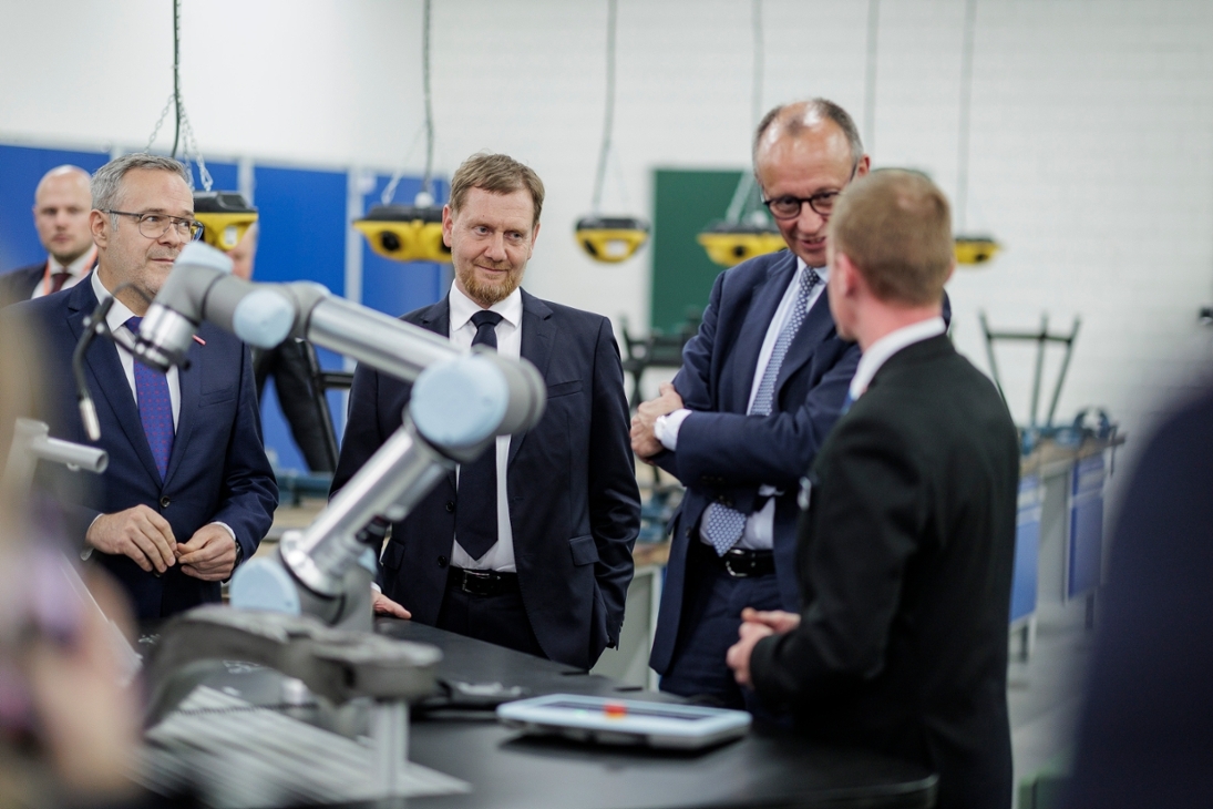 Foto: Antrittsbesuch von Bundeskanzler Friedrich Merz im Freistaat Sachsen - Bildungszentrum