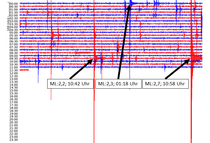 Seismogramm Station Wernitzgrün (© LfULG, Seismologieverbund Mitteldeutschland)