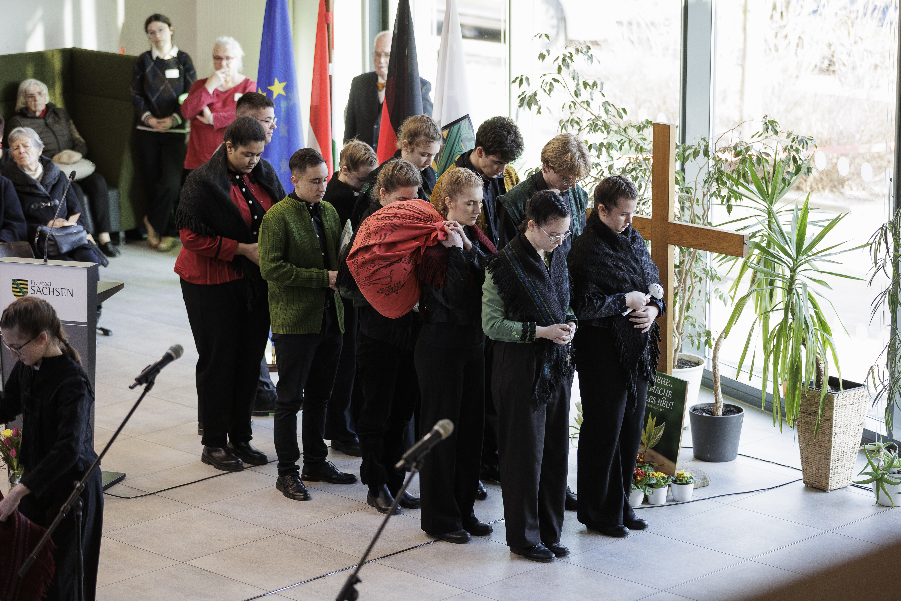 Ministerpräsident Michael Kretschmer und der ungarische Staatspräsident Dr. Tamás Sulyok haben in Pirna der Vertreibung der Ungarndeutschen gedacht. Im Rahmen des Gedenkens nahmen der Ministerpräsident und der ungarische Staatspräsident an der Veranstaltung »Sachsen und Ungarn - 80 Jahre Vertreibung der Ungarndeutschen« im Evangelischen Schulzentrum teil.