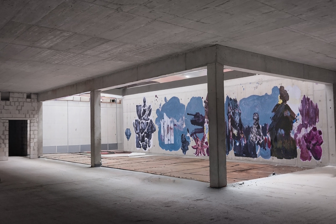 Derzeitiges Baustellenfoto mit eingefügtem zukünftigem Gemälde (erstellt von Annedore Dietze).