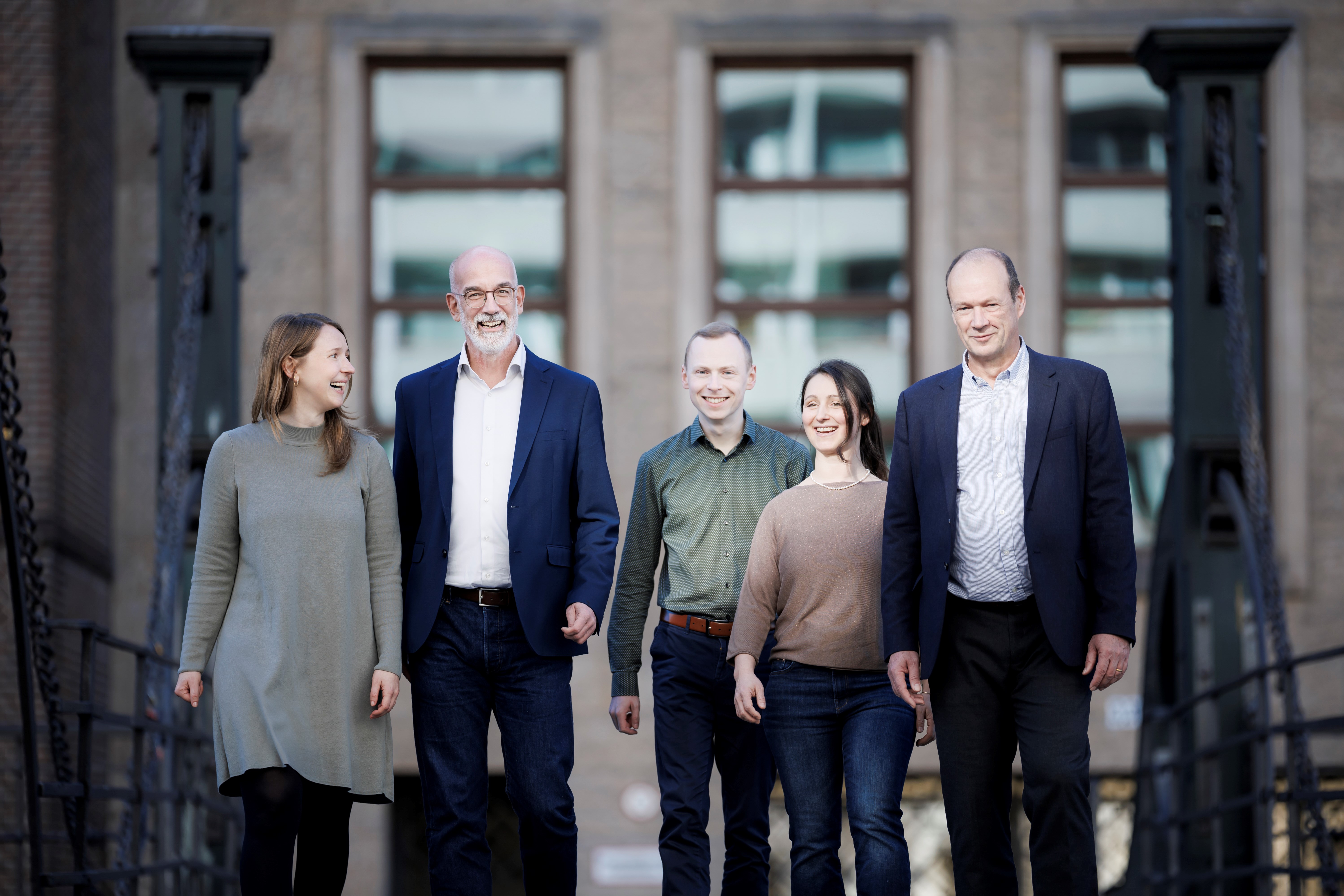 v.r.n.l.: Prof. Andreas Rietbrock (wissenschaftliche Co-Leitung), Dr. Katharina von Sturm (Projektkoordination), Johannes Wünsche (Kommunikation), Prof. Christian Stegmann (wissenschaftliche Co-Leitung), Sarah Stötzner (Leitung Kommunikation)
