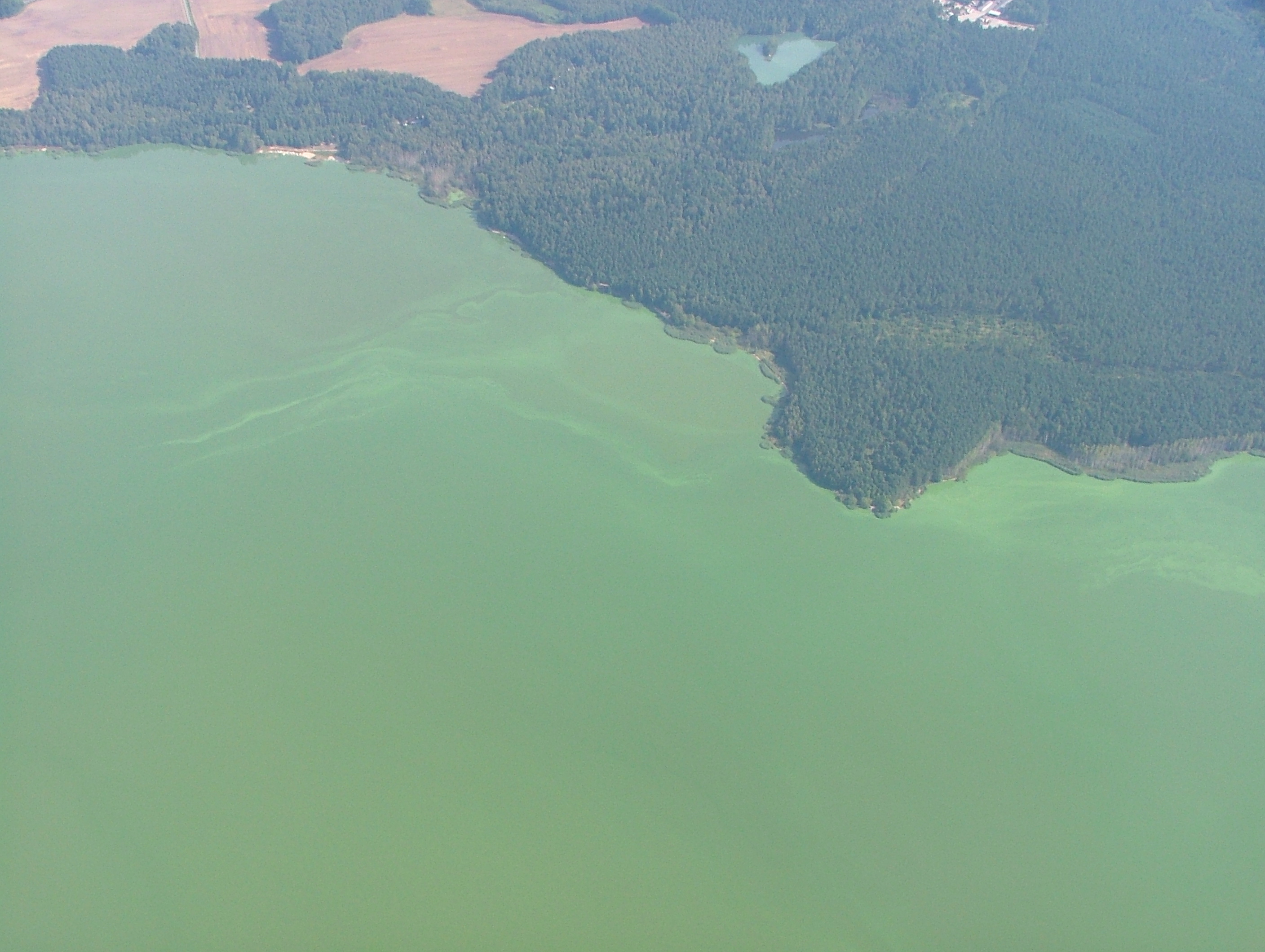 Massenentwicklung von Blaualgen auf der Talsperre Quitzdorf im August 2012.