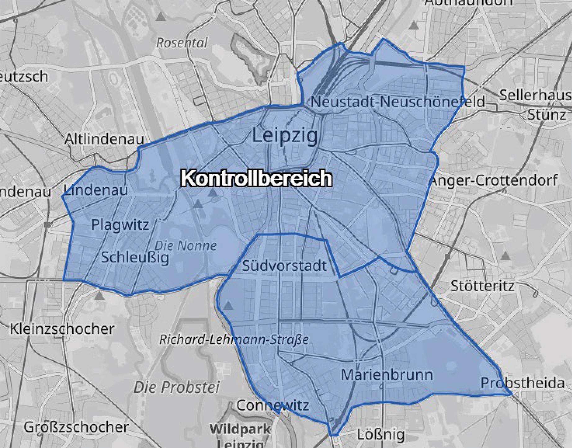 Er umfasst den innerhalb der genannten Straßen liegenden Bereich und erstreckt sich auf die ihn begrenzenden Straßenzüge in ihrer gesamten Breite, einschließlich Gehweg und möglicher angrenzender Bebauung. Auch außerhalb des Kontrollbereiches wird die Polizei zur Abwehr von Gefahren für die öffentliche Sicherheit und Ordnung Kontrollen auf Grundlage des Sächsischen Polizeivollzugsdienstgesetzes durchführen.
