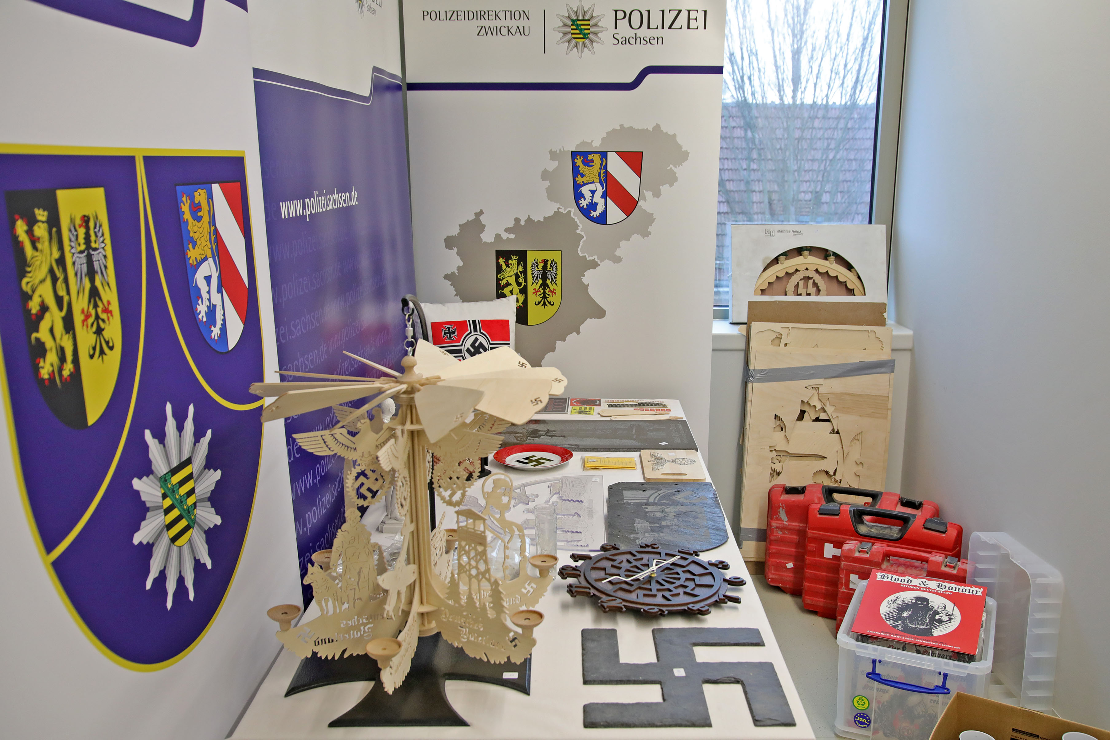 »Im Ergebnis von Ermittlungen des Polizeilichen Staatsschutzes ist es gelungen, einen überregional agierenden Händler mit rechter Nazipropaganda das Handwerk zu legen. Wir sind überzeugt, damit den Vertriebsstrukturen der rechten Szene einen empfindlichen Schlag versetzt zu haben«, erklärt Polizeipräsident Lutz Rodig, der Leiter der Polizeidirektion Zwickau. – inklusive Bildmaterial
