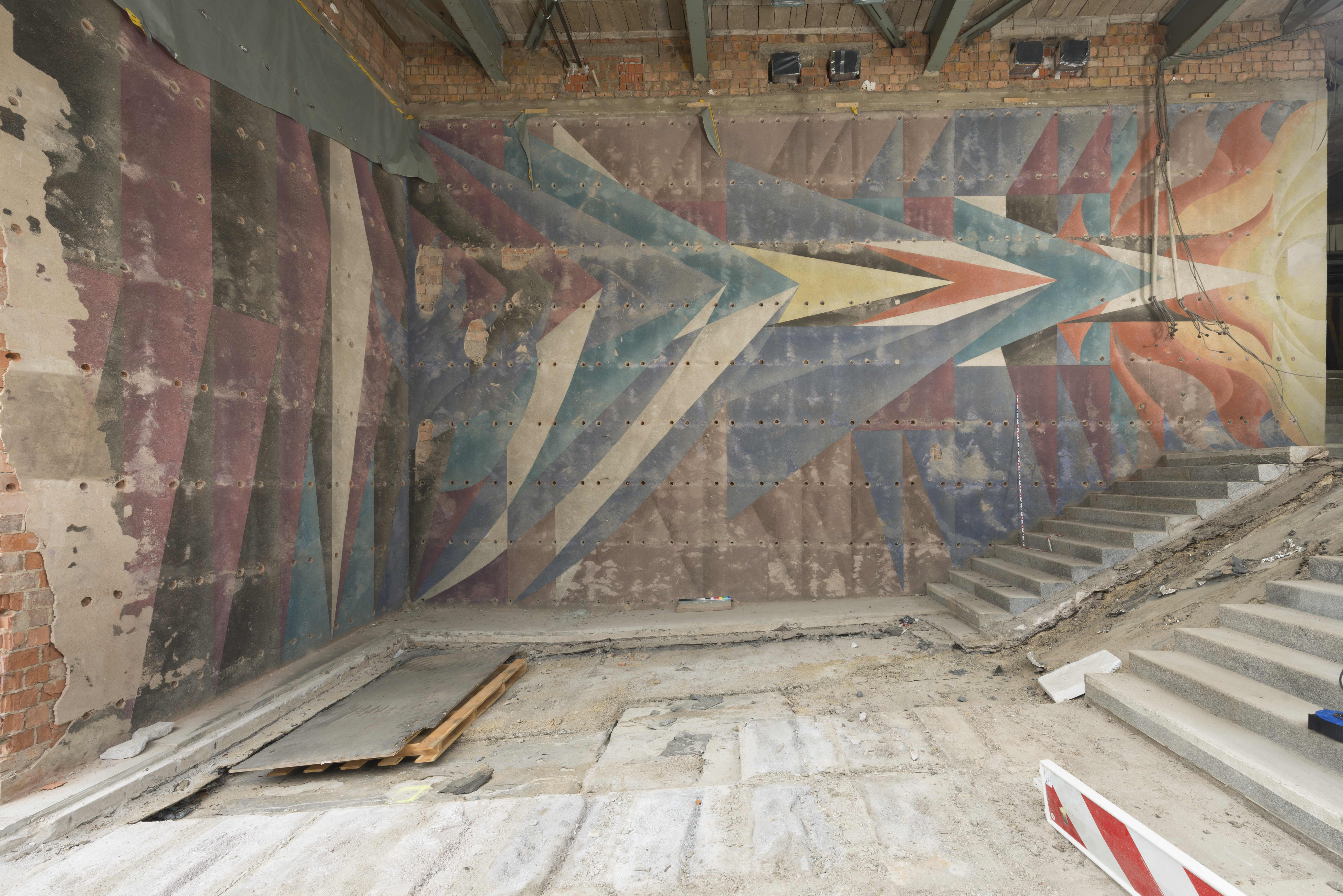 Das Freilegen der Wandgestaltung war lange umstritten. Die freiberufliche Restauratorin Sonnhild Müller und Dietrich Kelterer, Kunstverein Plauen – Vogtland e. V. engagierten sich seit 2017 für die Freilegung dieses bedeutenden Kunstwerks, das seit 1987 mit Sandsteinplatten abgedeckt war. Bohrkernuntersuchungen im Jahr 2019 ergaben, dass es bis auf wenige Schäden fast vollständig erhalten war. Der gut erhaltene Originalzustand und eine restaurierte Musterfläche überzeugten den Plauener Stadtrat, der daraufhin Freilegung, Reinigung, Putz- und Farbergänzung sowie Konservierung des Wandbildes beschloss.