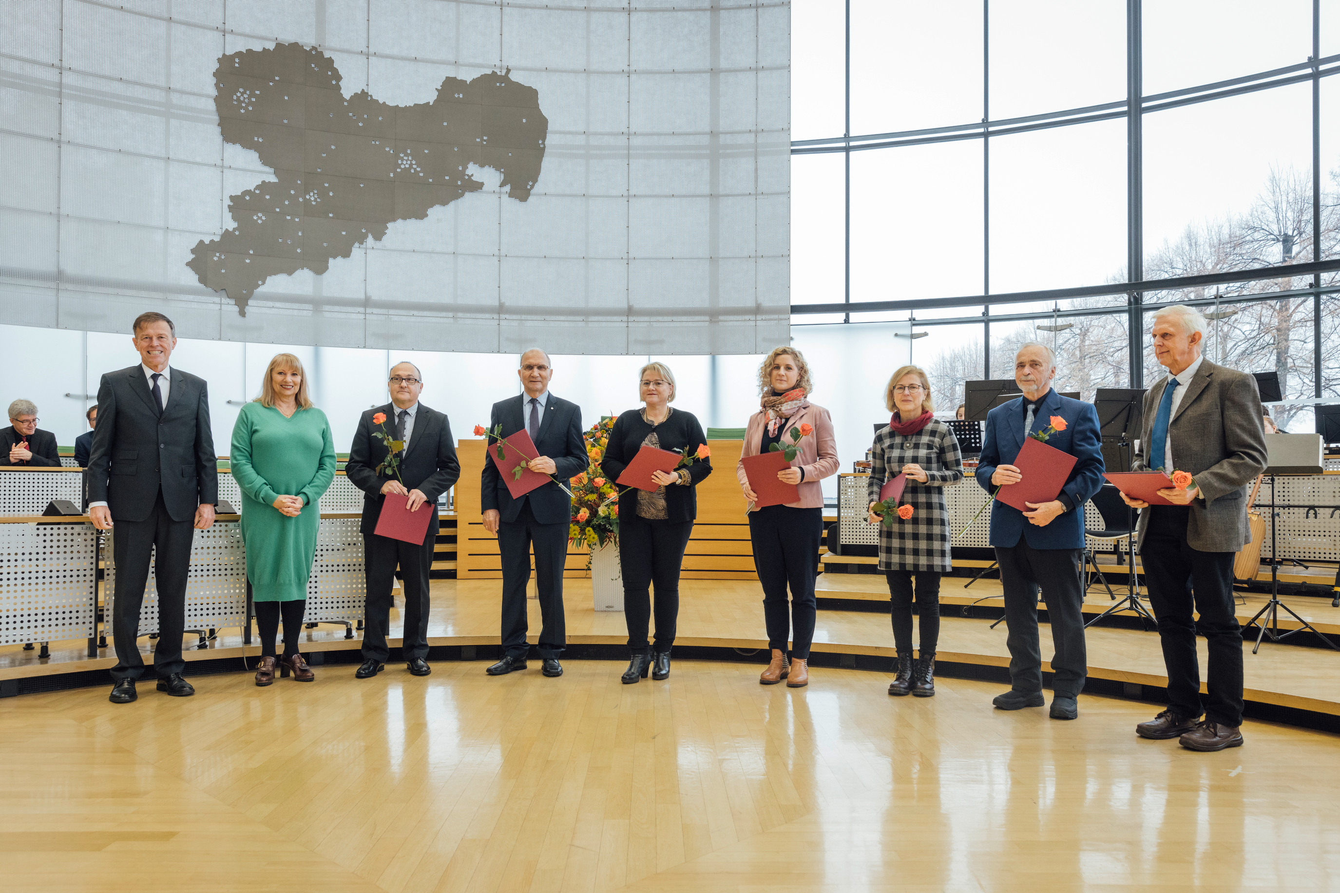 Sozialministerin Petra Köpping und Landtagspräsident Dr. Matthias Rößler zeichnen Ehrenamtliche im Sächsischen Landtag aus