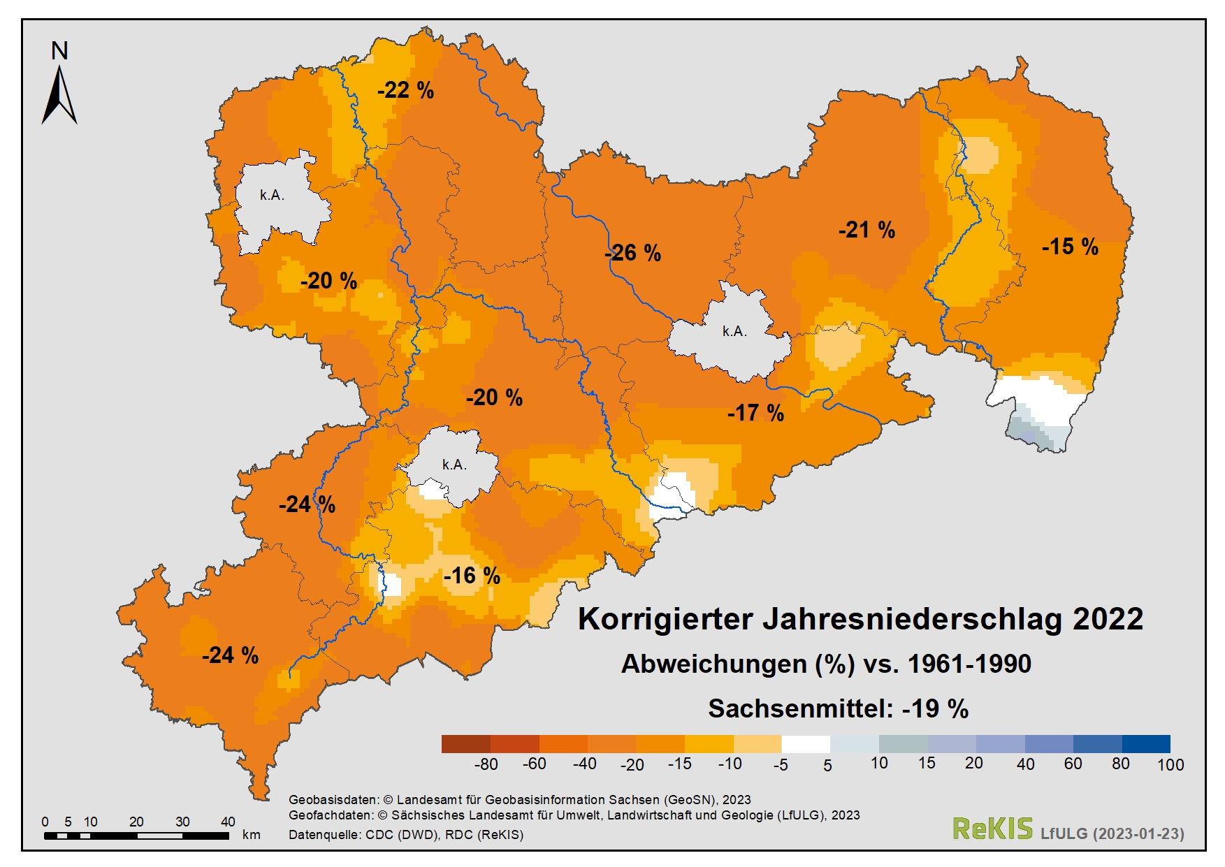 - [Foto] Grafik: Jahresniederschlag 2022 (Abweichungen im Vergleich zur Referenzperiode 1961-1990)