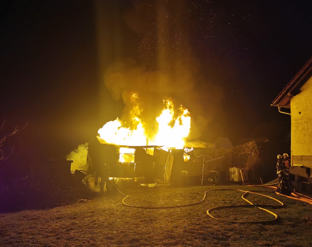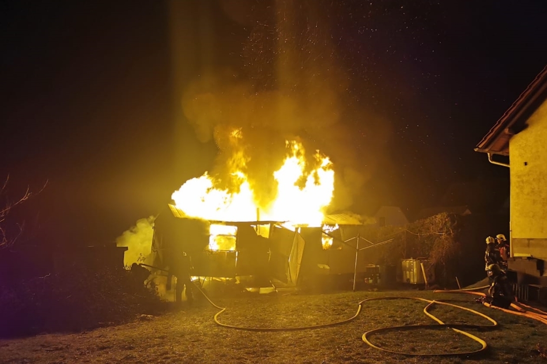 Bauwagen geht in Flammen auf