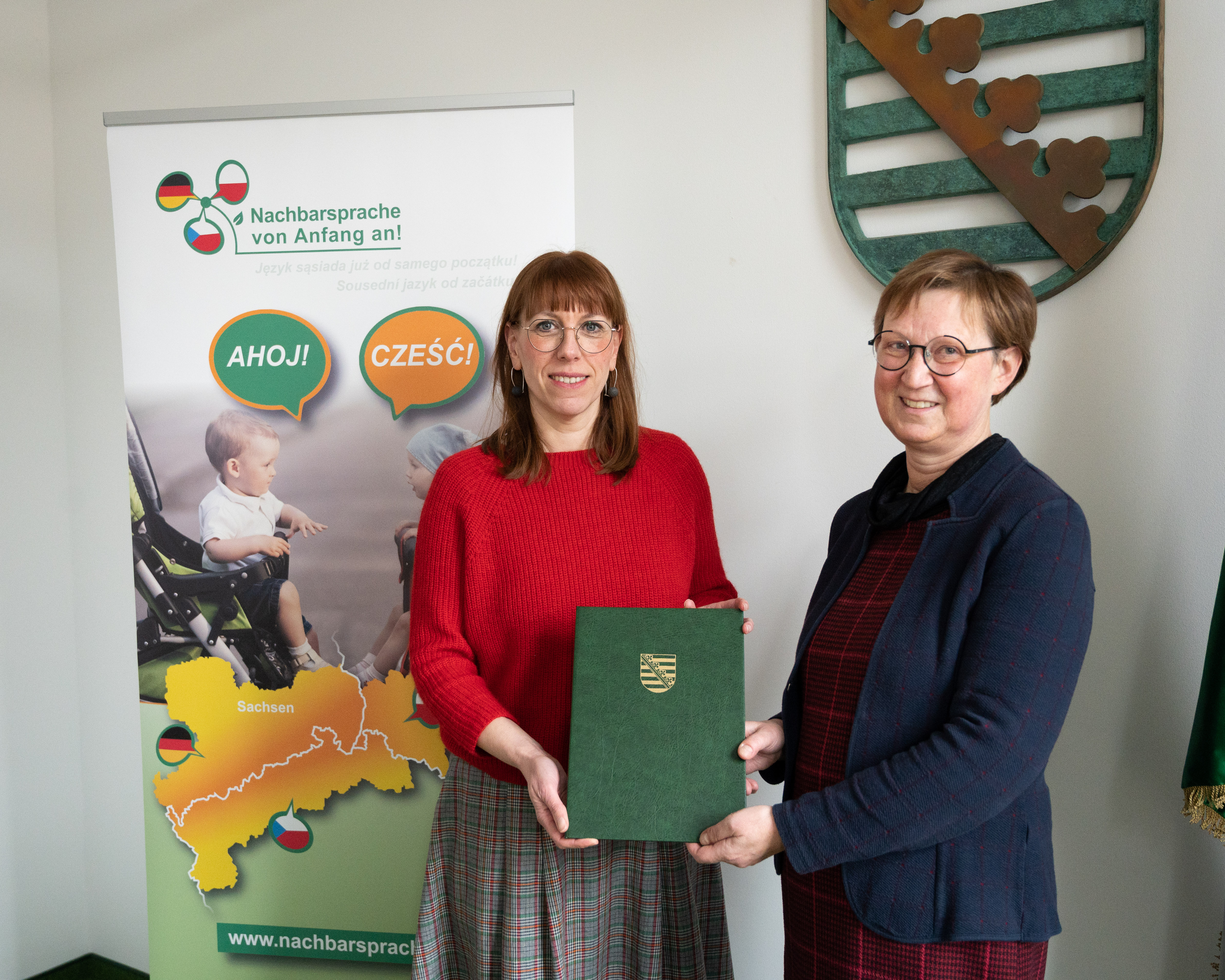 Europaministerin Katja Meier hat am Dienstag der Leiterin der Landesstelle für nachbarsprachige Bildung, Dr. Regina Gellrich, den Zuwendungsbescheid für eine institutionelle Förderung übergeben. Mit dem Doppelhaushalt 2023/2024 wird die Finanzierung der Einrichtung verstetigt und aufgewertet. Zudem kann die wertvolle Arbeit der LaNa für die an Polen und Tschechien angrenzenden Landkreise zur Förderung der Nachbarsprachen Polnisch und Tschechisch fortgesetzt und weiterentwickelt werden. Dies ist ein wichtiger Baustein zur Stärkung des sächsisch-polnischen und des sächsisch-tschechischen Grenzraums.