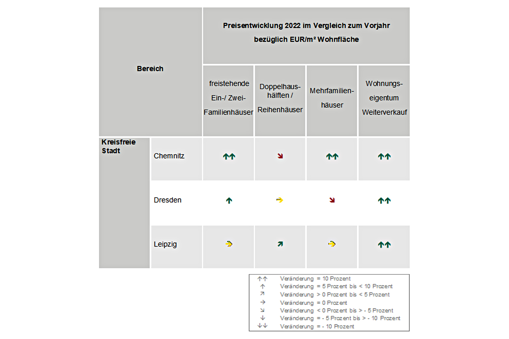 Mit einem Anteil von fast 60 Prozent am sächsischen Gesamtumsatz sind die Markdaten der kreisfreien Städte ein wichtiger Indikator für die Entwicklung des Immobilienmarktes im Freistaat Sachsen. Dieser Grundstücksmarkt stand 2022 unter starkem Einfluss der Coronavirus-Pandemie, des Ukrainekrieges sowie einer erhöhten Inflation und eines steigenden Zinsniveaus.