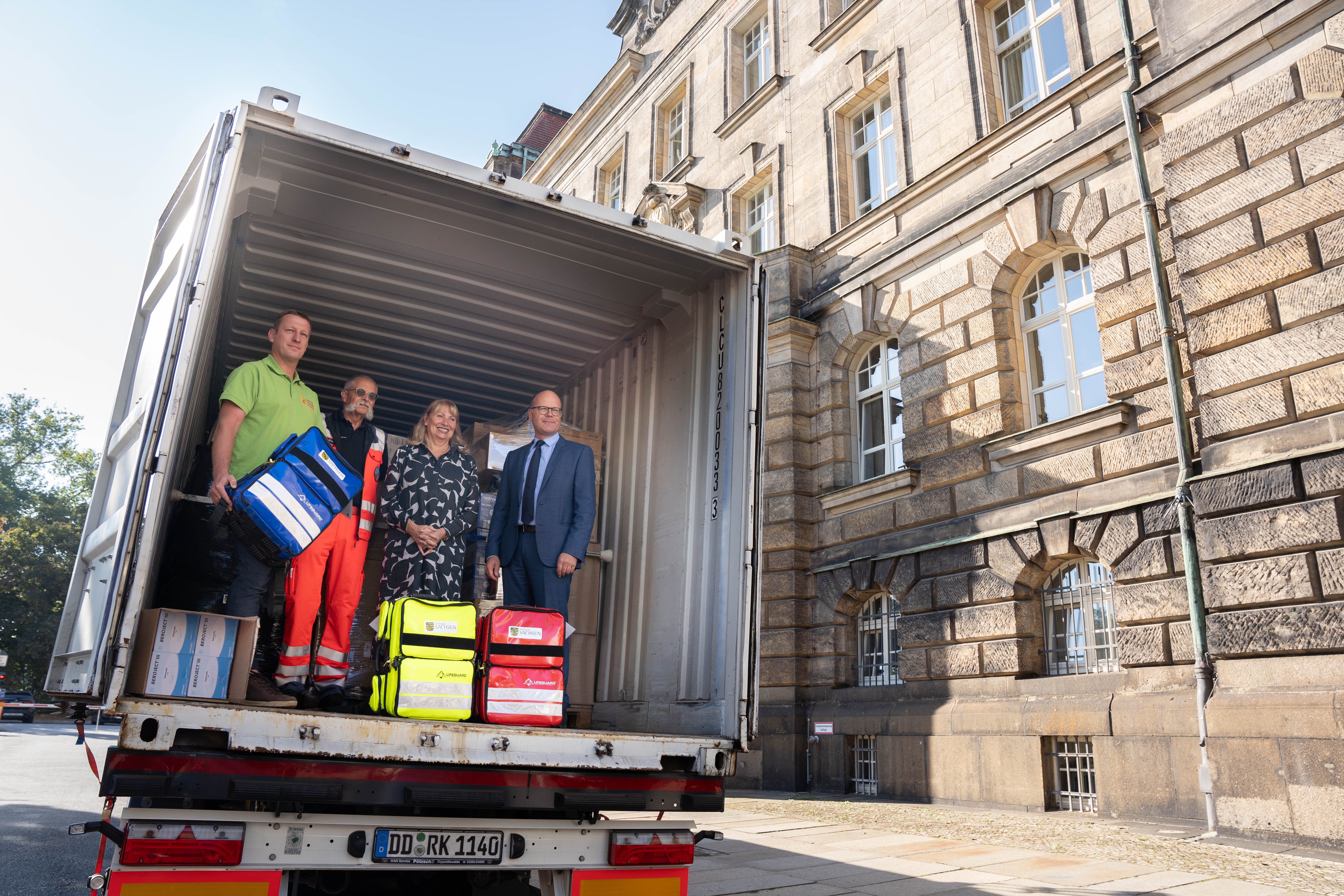 Staatskanzleichef Oliver Schenk und Gesundheitsministerin Petra Köpping haben gemeinsam mit Vertretern aus Hainichen und Radebeul an diesem Donnerstag einen ersten LKW mit Hilfsgütern auf den Weg geschickt. Diese sollen an Krankenhäuser in den von beiden sächsischen Städten unterstützten ukrainischen Kommunen in der Region Kyiv und nach Kryvyi Rih sowie Radebeuls Partnerstadt Obuchiw gehen. Darunter befinden sich Medizinprodukte wie Kanülen, Spritzen und Infusionssysteme, aber auch Einrichtungsgegenstände und Technik.