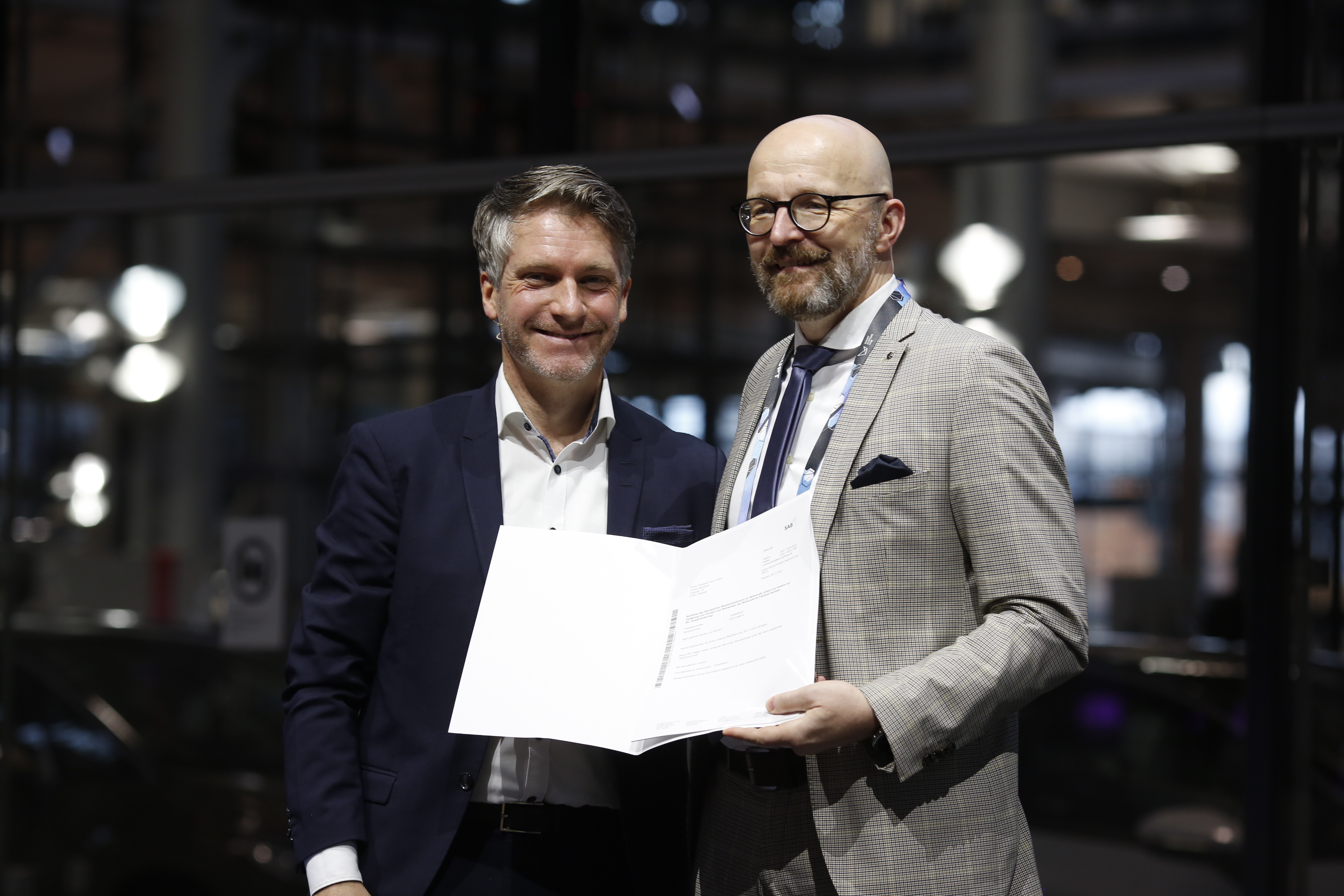 Das Innovationszentrum Smart Systems Hub vernetzt und unterstützt seit fünf Jahren die Akteure der Digitalbranche in der Region Dresden. Der Freistaat Sachsen unterstützt den Hub seit seiner Gründung im Jahr 2018, u. a. mit Fördermitteln über das Programm zur Förderung von Clustern und Netzwerken der Wirtschaft (Richtlinie Clusterförderung). Heute hat der sächsische Wirtschaftsstaatssekretär Thomas Kralinski einen weiteren Fördermittelbescheid überreicht. Dieser umfasst eine Zusage für Mittel in Höhe von bis zu 4,2 Millionen Euro bis zum Jahr 2028. Michael Kaiser, Geschäftsführer der Smart Systems Hub GmbH, nahm den Bescheid anlässlich der Technologieveranstaltung HUB:DISRUPT 2023 in der Gläsernen Manufaktur von Volkswagen in Dresden entgegen.
