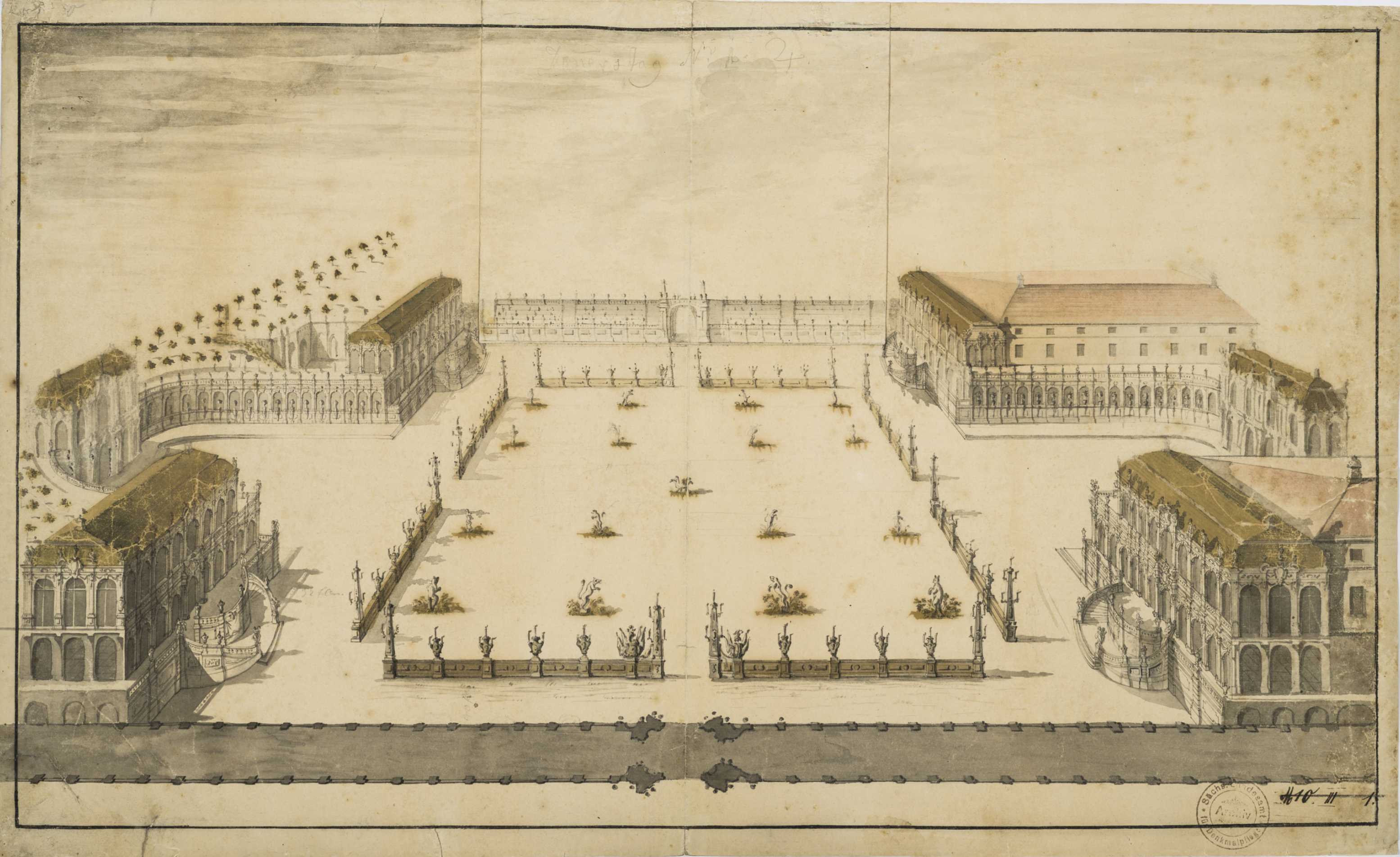 - Matthäus Daniel Pöppelmann (1622–1736), Dresden, Zwinger, Perspektivischer Präsentationsentwurf zu dessen Vollendung als Festplatz mitsamt Redouten- und Opernhaus, 1718 (JPG; 400 kB)