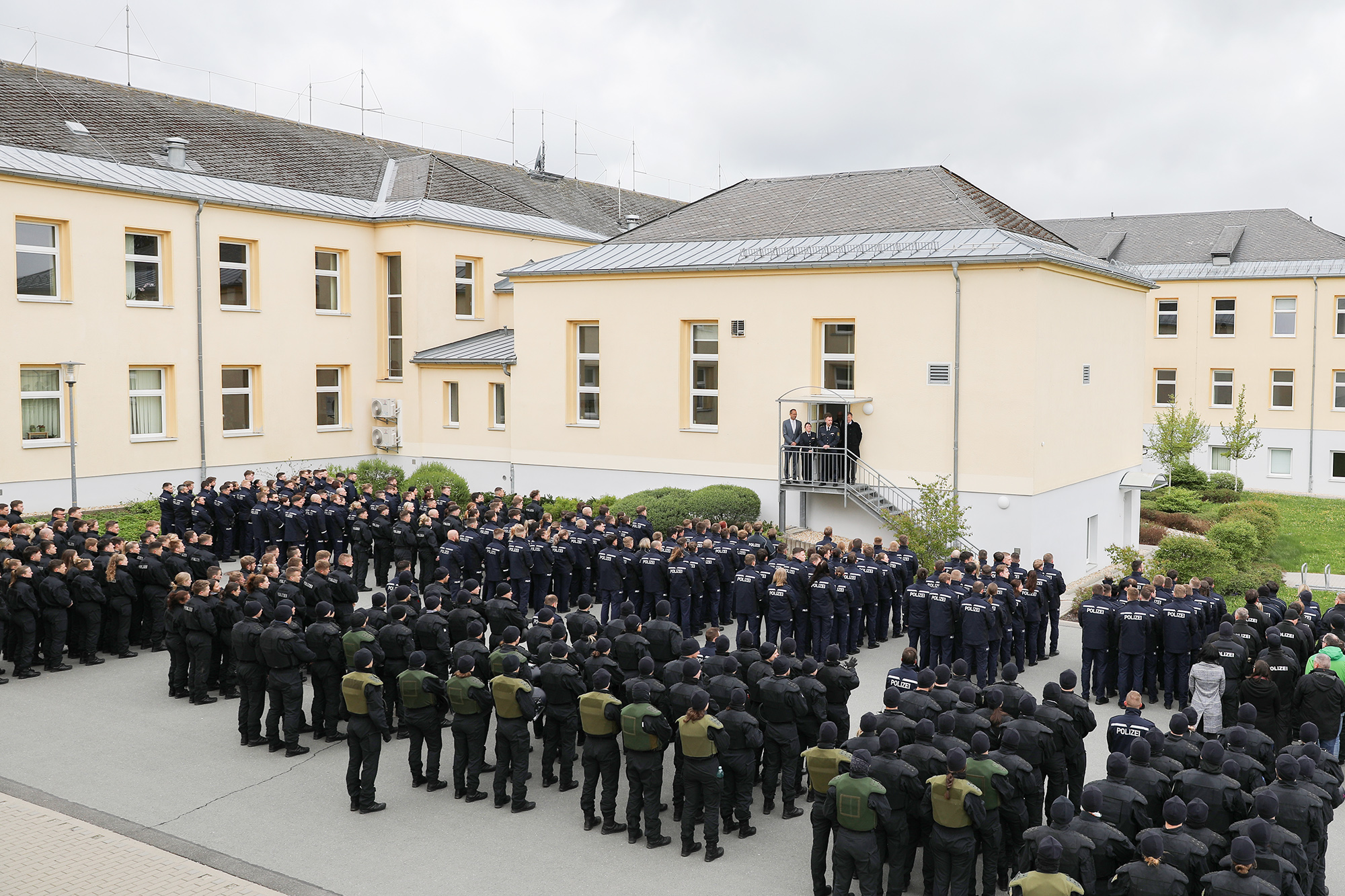 »Die Polizei ist Garant der öffentlichen Sicherheit und Ordnung. Das ist ihr Kernauftrag. Und hier, an der Polizeifachschule in Schneeberg, werden dafür die Grundsteine gelegt.«