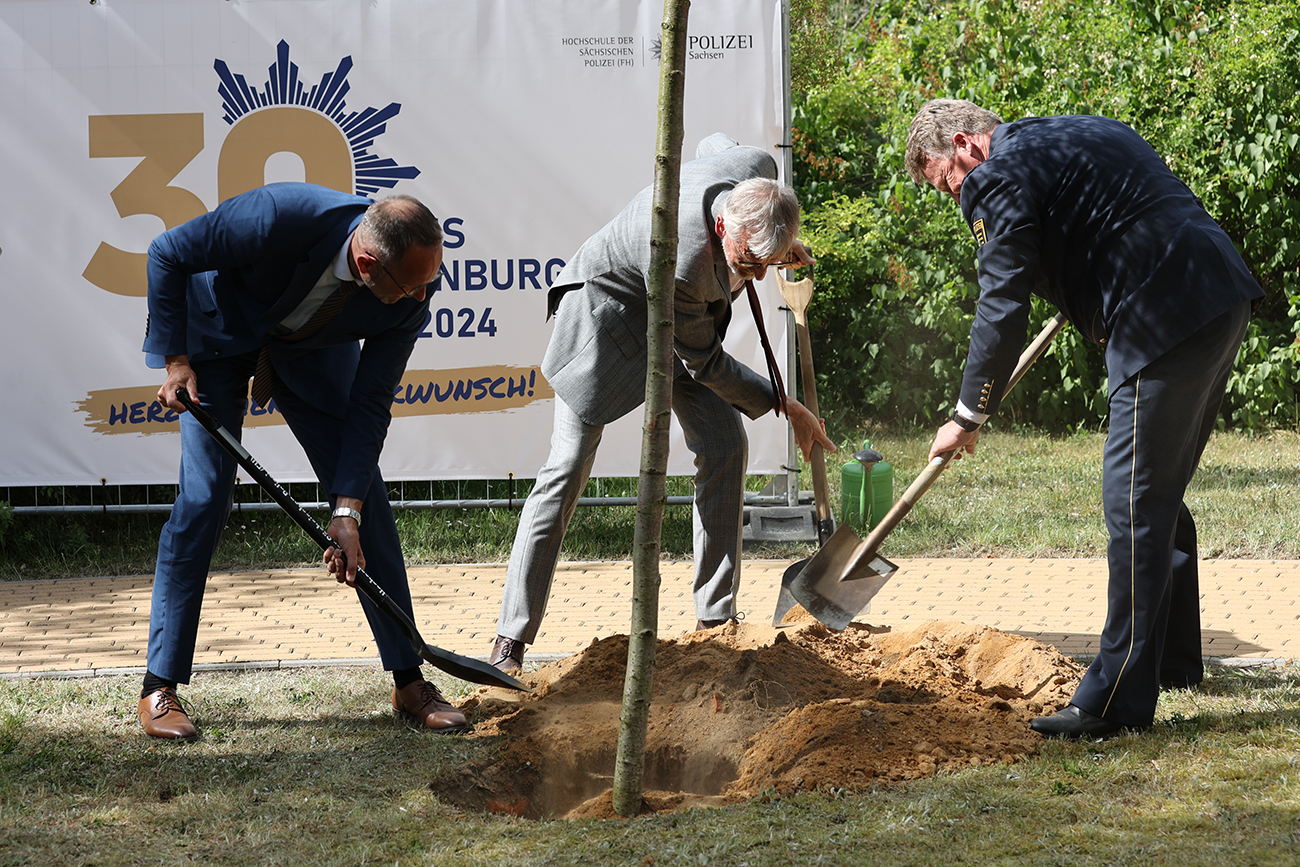 Als bleibendes Zeichen des 30-jährigen Bestehens des Campus Rothenburg pflanzten Staatsminister Schuster, Landespolizeipräsident Kubiessa und Rektor Benkendorff zum Abschluss des Festaktes einen Baum. Die Kirsche soll auch in den kommenden Jahren das Früchte tragende Wachsen und Gedeihen der Hochschule symbolisieren.