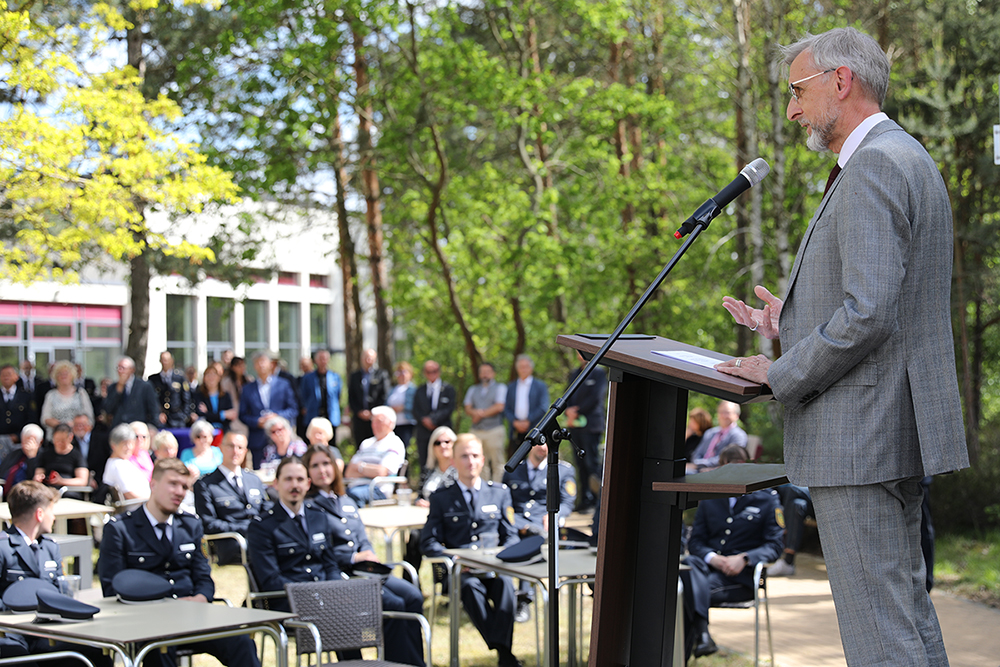 Landespolizeipräsident Jörg Kubiessa betonte die Wichtigkeit der Aus- und Fortbildung in Bezug auf den Polizeiberuf: