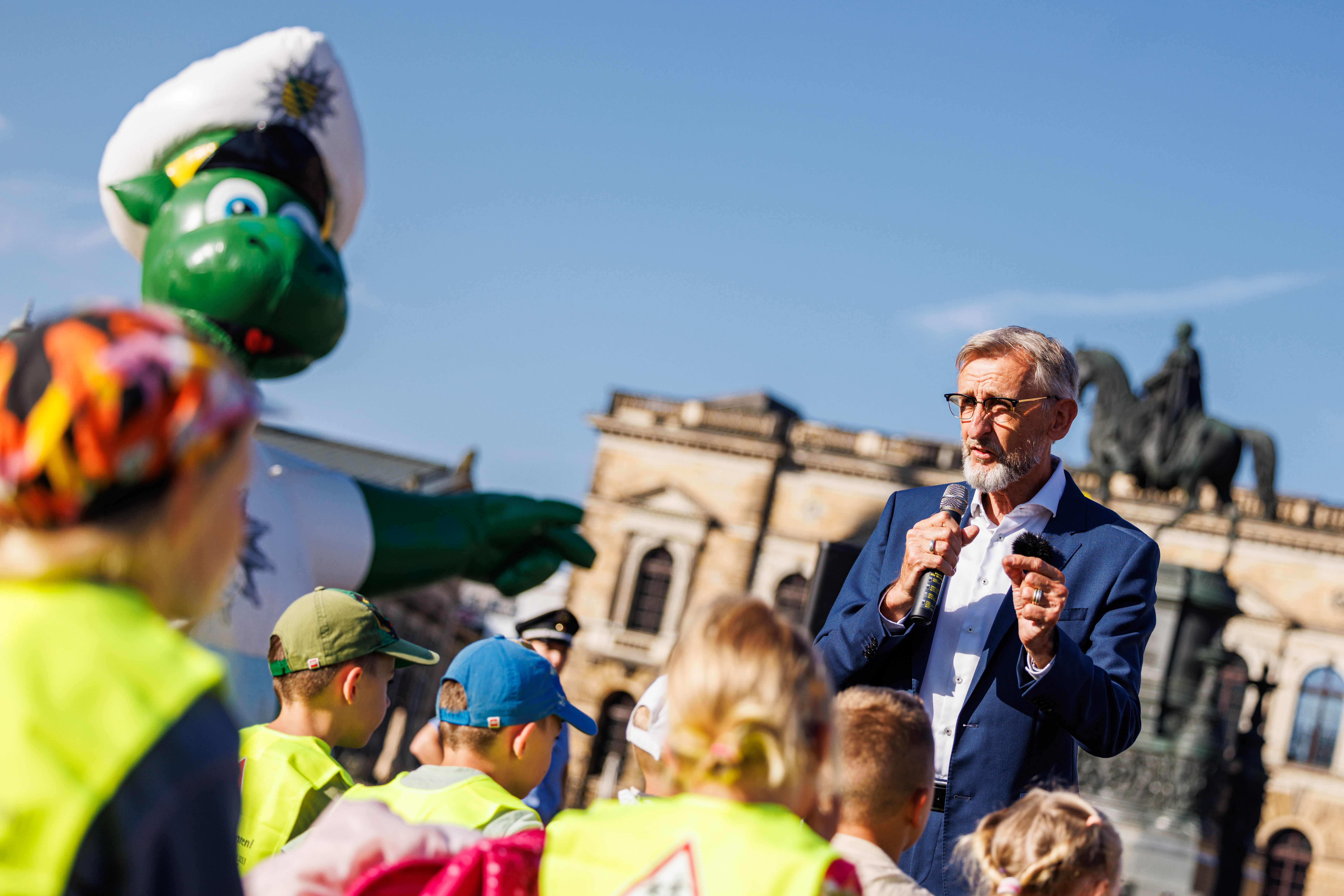 Staatsminister Armin Schuster: »Es ist unsere gemeinsame Aufgabe, die Schulwege verkehrssicher zu machen und ich bedanke mich bei den Polizeibeamtinnen und Polizeibeamten, Landesverband des Sächsischen Verkehrsgewerbes e.V. sowie allen Beteiligten für ihr Engagement bei dieser wichtigen Verkehrsaktion.«