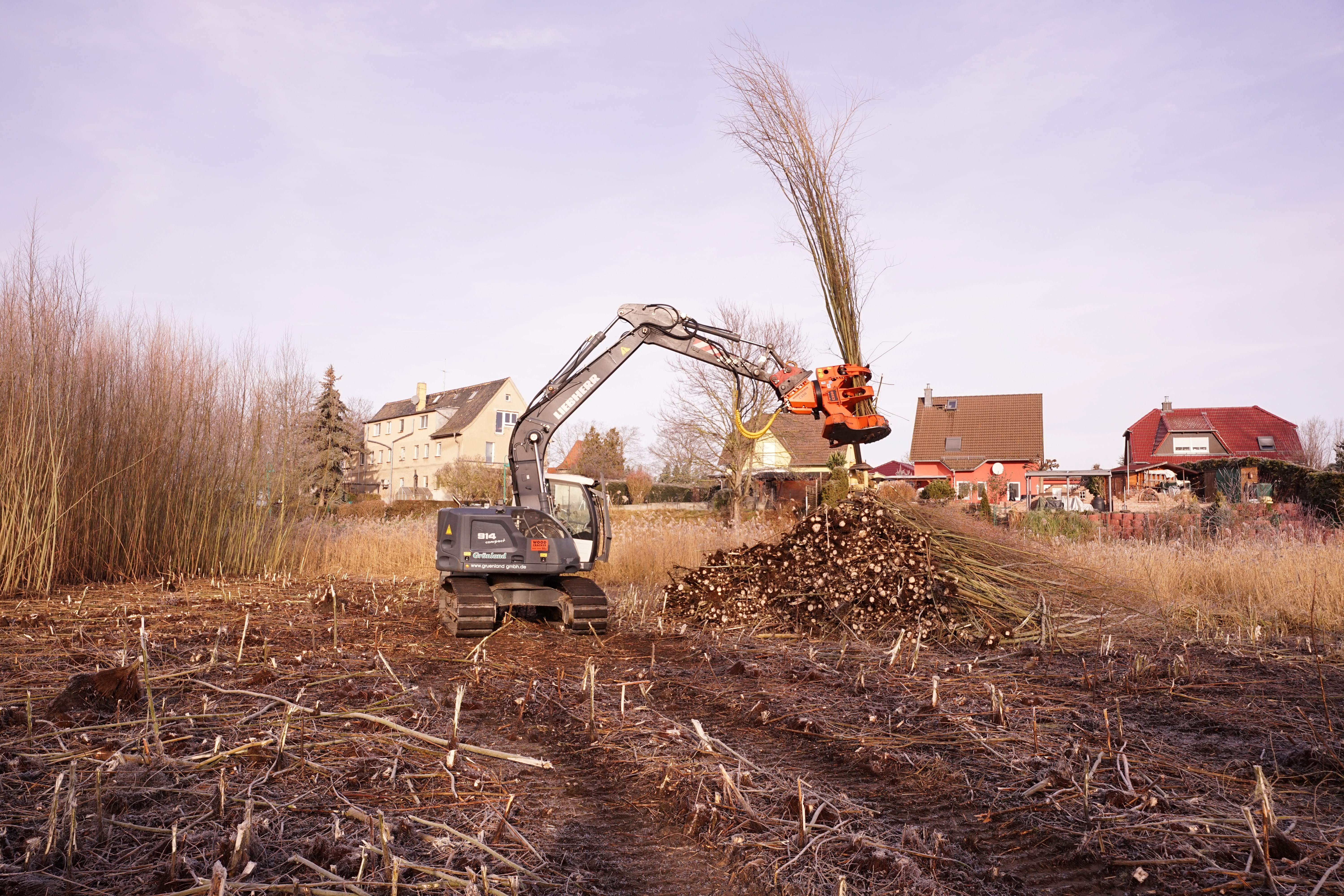 Große Holzerntemaschinen sind vor Ort im Einsatz, um die natürliche Sukzession zurückzudrängen