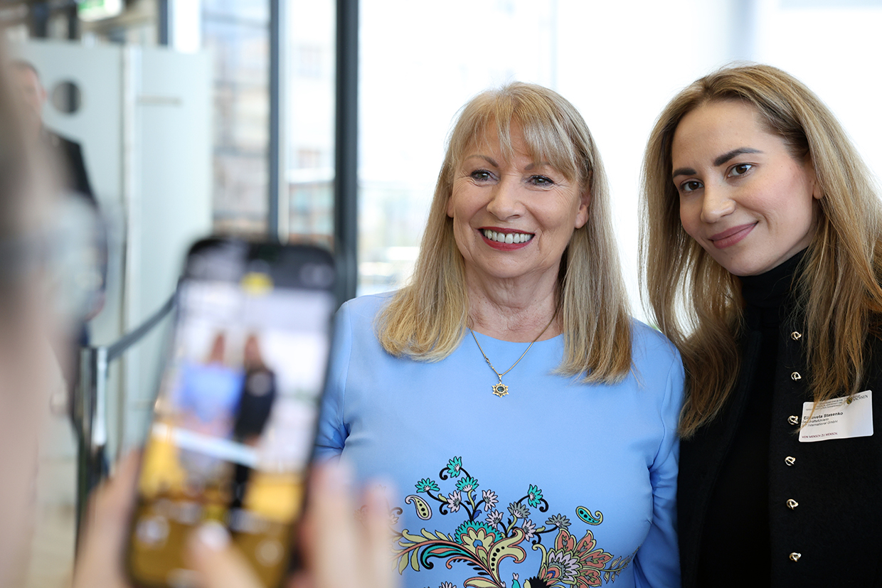 - [Foto] Feststunde zum Internationalen Frauentag - Staatsministerin mit Teilnehmerin an der Veranstaltung