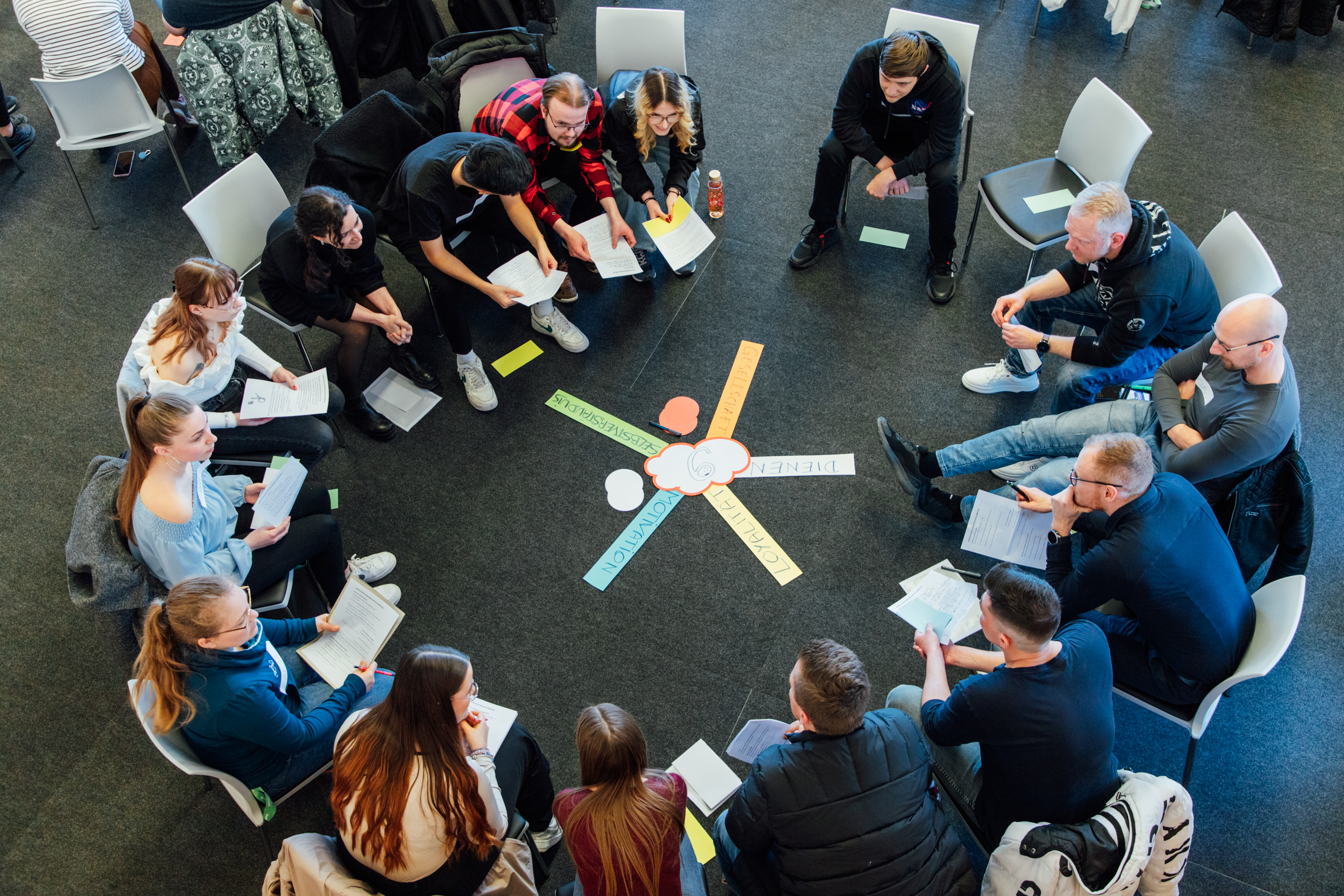 Die Anwärterinnen und Anwärter setzten sich in Kleingruppen mit zentralen Fragen zum Berufsbild auseinander. Sie diskutierten über die Verantwortung, die mit ihrem Beruf einhergeht, und die Werte, die sie als zukünftige Beamtinnen und Beamte teilen. Ebenso wurde erörtert, wie mit gesellschaftlicher Kritik am Berufsstand umzugehen ist und ob es Grenzen der Loyalität gibt. Dabei wurde auch hinterfragt, wie sich Kritikfähigkeit mit der Pflicht zur Loyalität vereinbaren lässt.