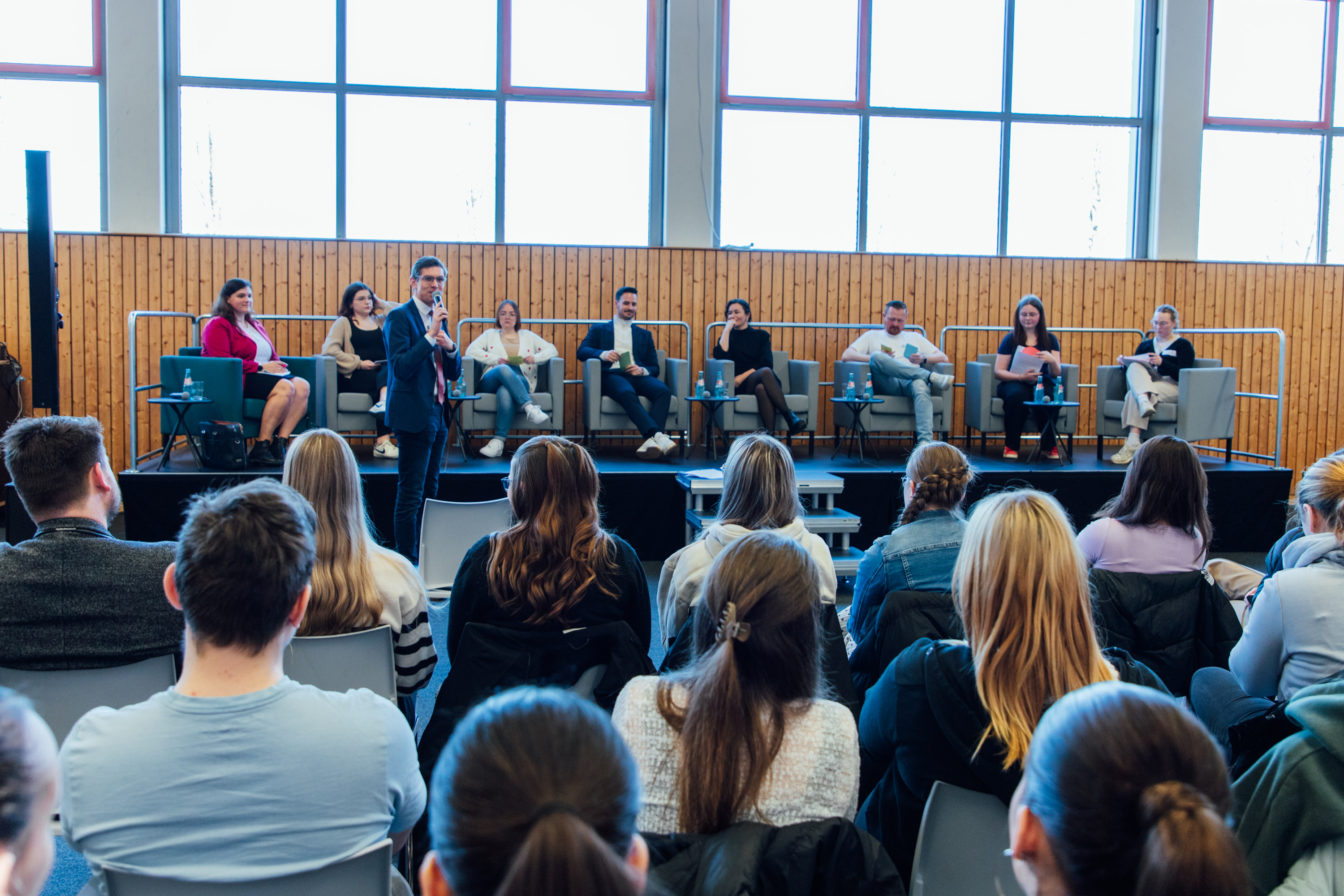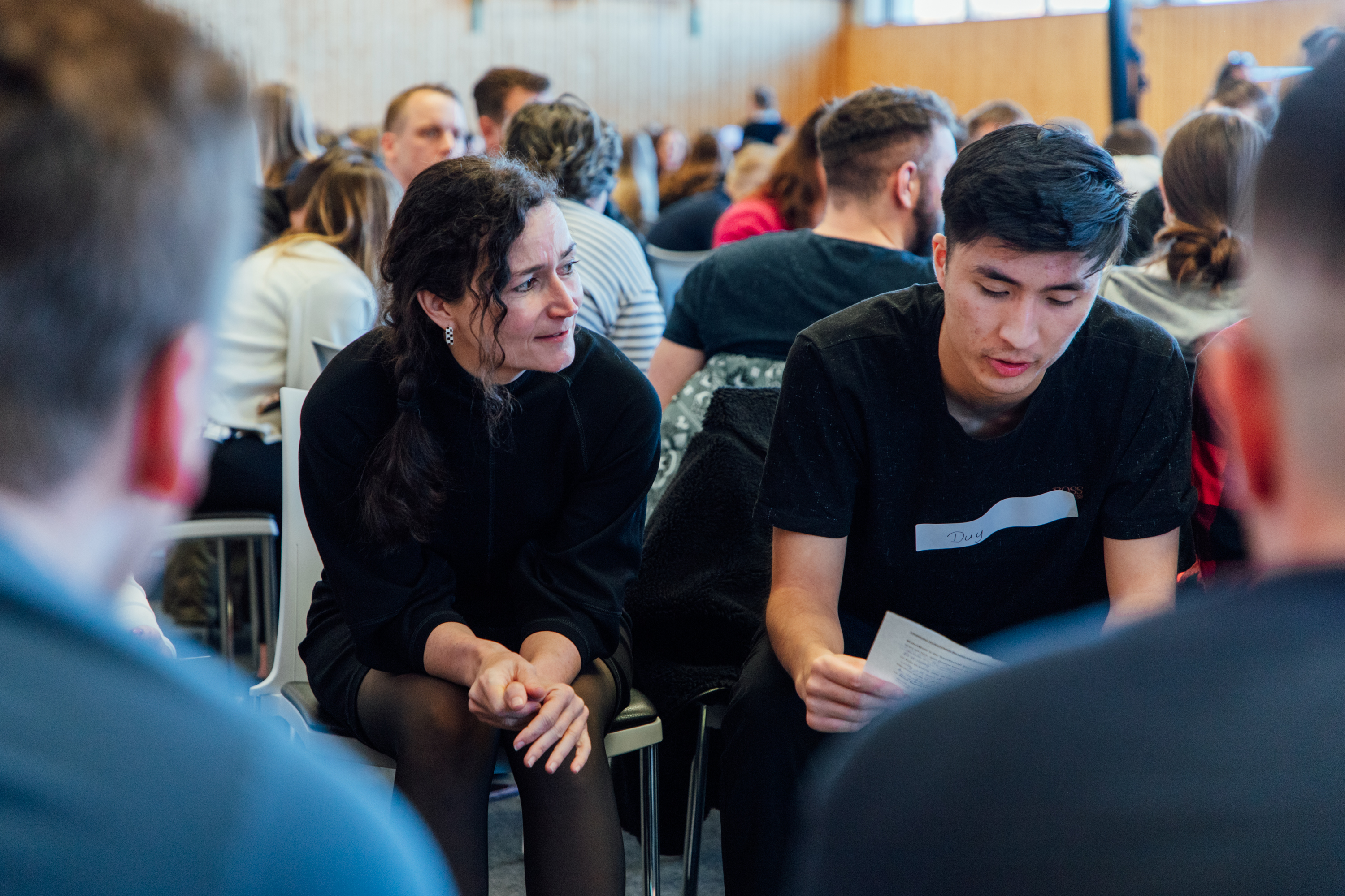 Das Format entstand aus den Podiumsdiskussionen zur politischen Bildung, die sich im vergangenen Jahr mit den Werten des Grundgesetzes befassten. Aus der Teilnehmerschaft gab es den Impuls, stärker in die Diskussion eingebunden zu werden. Dies wurde nun umgesetzt: Zahlreiche Anwärterinnen und Anwärter meldeten sich freiwillig als Moderatorinnen und Moderatoren und übernahmen eine aktive Rolle bei der Gestaltung der Veranstaltung.