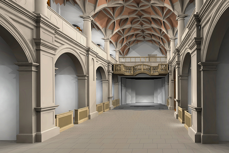 Der Raum entspricht künftig handwerklich und materiell dem historischen Vorbild und bietet alle Voraussetzungen für verschiedene öffentliche Nutzungen. Hierfür investieren Bund und Land insgesamt 8,4 Millionen Euro.