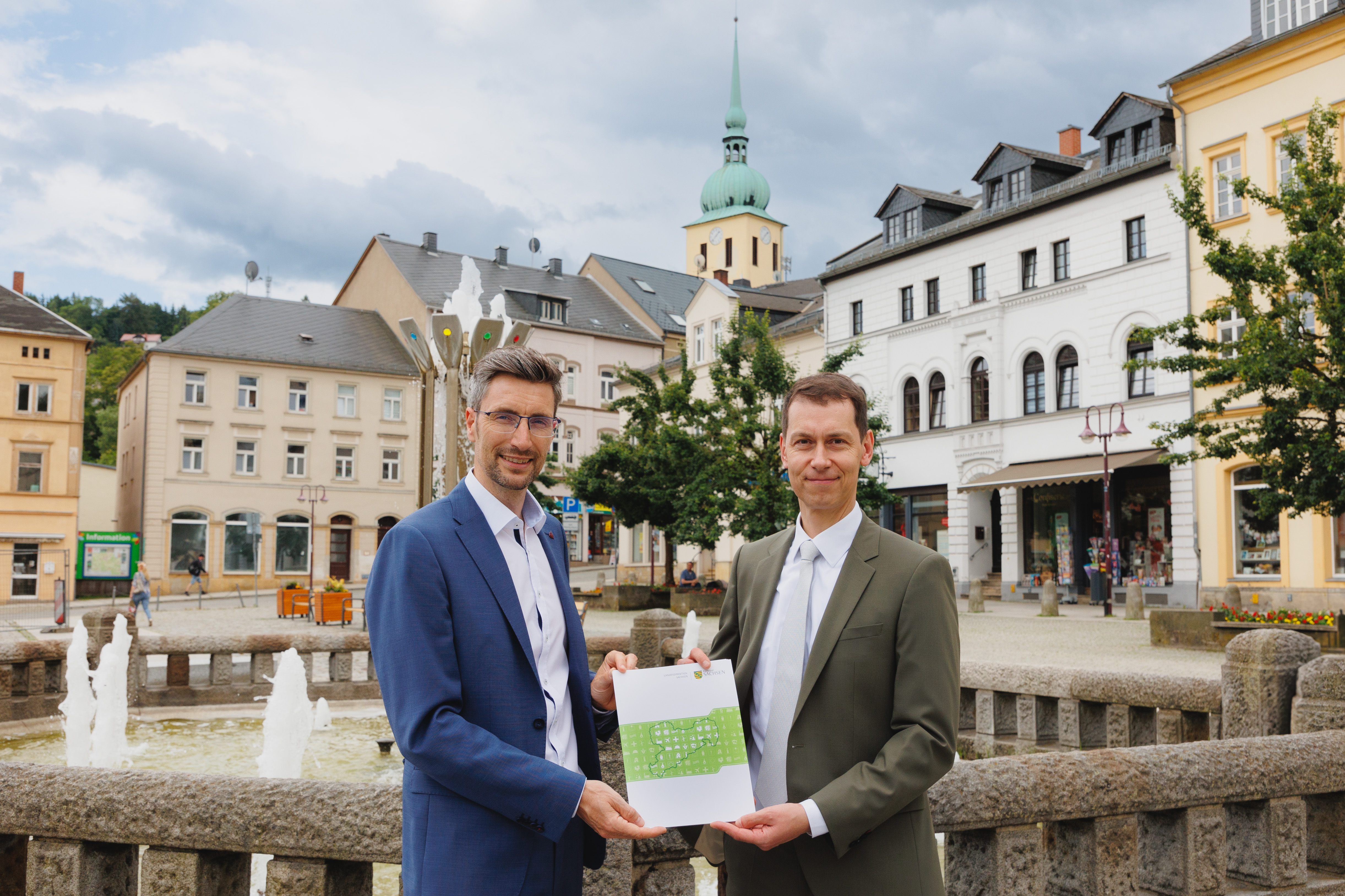 Der Freistaat Sachsen unterstützt die Große Kreisstadt Sebnitz bei der Ausrichtung des »Tag der Sachsen« mit einer Bedarfszuweisung in Höhe von bis zu 1,4 Millionen Euro. Der Präsident der Landesdirektion Sachsen, Béla Bélafi übergab heute in Sebnitz den entsprechenden Bescheid an Oberbürgermeister Ronald Kretzschmar.