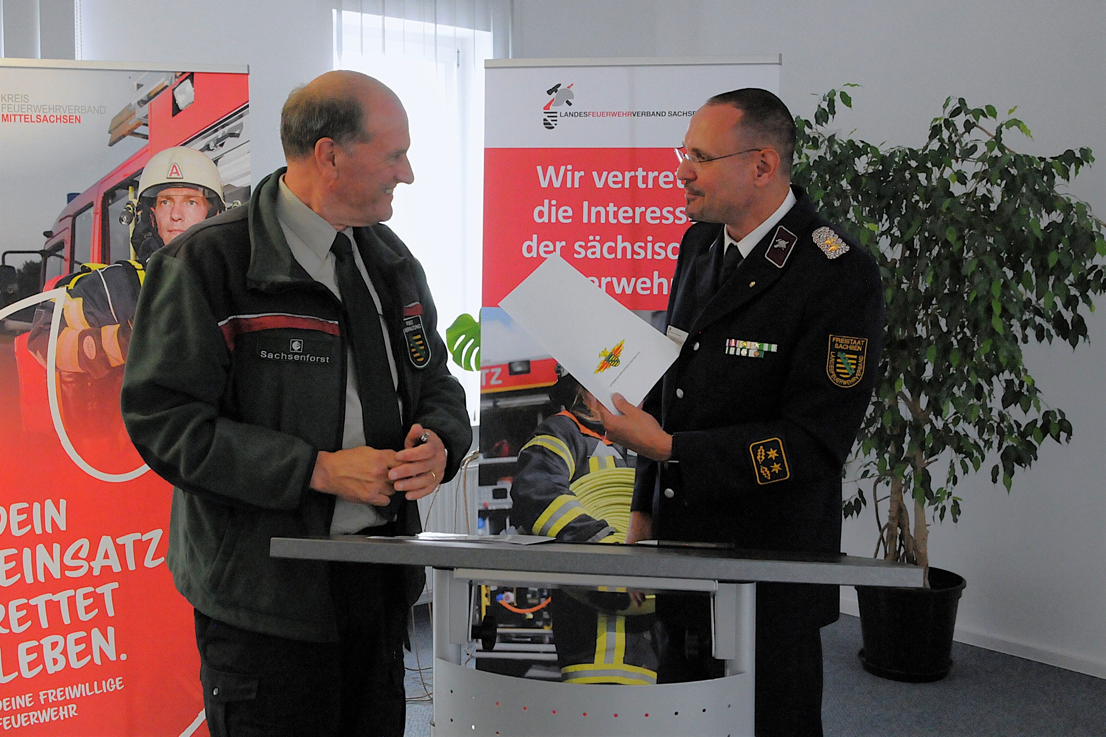 - [Foto] Utz Hempfling, Landesforstpräsident (l.) und Gunnar Ullmann, Präsident des Sächsischen Landesfeuerwehrverbandes (r.)
