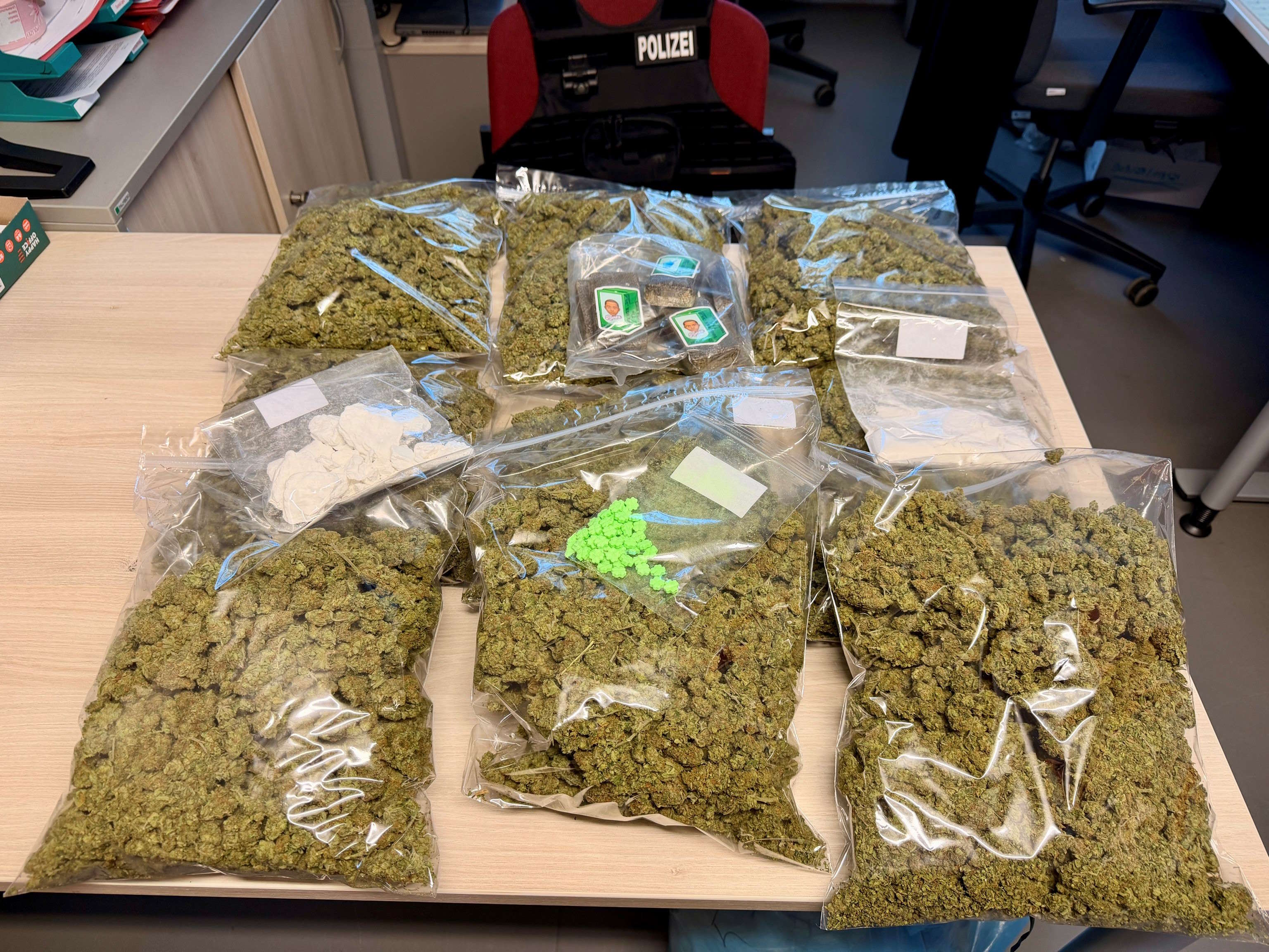 Die Kriminalisten hatten nunmehr ausreichend Erkenntnisse gesammelt, sodass eine Spezialeinheit des Landeskriminalamtes Sachsen den 24-Jährigen am Mittwochmittag in der Bernsdorfer Straße vorläufig festnahmen. Bei der anschließenden Wohnungsdurchsuchung entdeckten die Ermittler Kokain (135 Gramm), Amphetamin (rund 500 Gramm), Marihuana (mehr als fünf Kilogramm), Haschisch (über 800 Gramm), LSD-Trips (178 Stück), Ecstasy