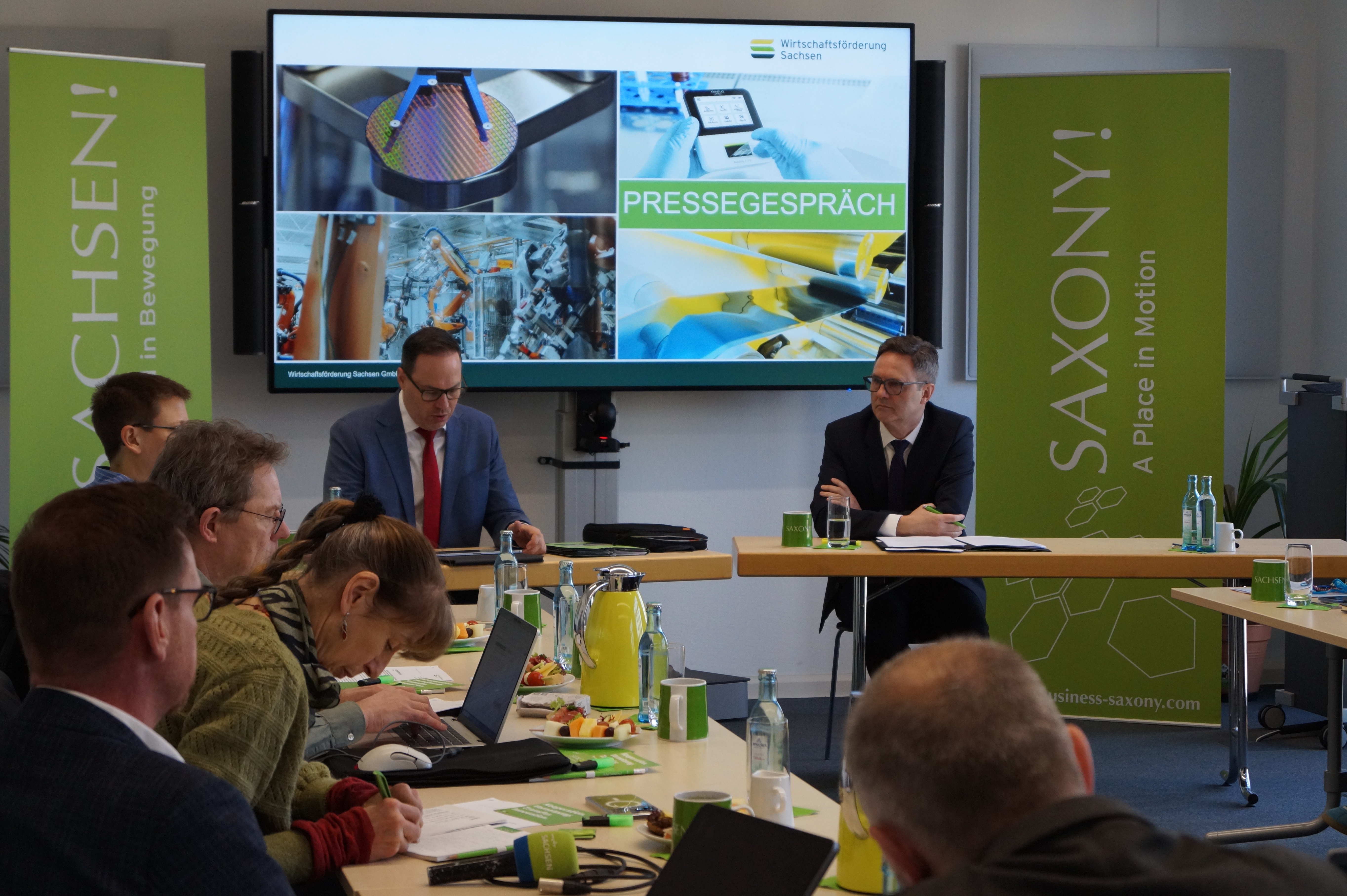 Wirtschaftsminister Dirk Panter fügt hinzu: »Bei Zukunftsthemen ist der Wirtschaftsstandort Sachsen gut aufgestellt. Die Mikroelektronikregion Dresden steht mit den Investitionen von ESMC, Infineon und Globalfoundries für eine industrielle Zukunft Europas. 25 Jahre Biotechnologie-Offensive zahlen sich ebenfalls aus: Diese Branche ist mittlerweile ein Motor für Innovation, Wachstum und Beschäftigung im Freistaat. Darüber hinaus bewirkt der sicherheitspolitische Paradigmenwechsel neue Investitionen im Bereich der Sicherheits- und Verteidigungsindustrie. Die Staatsregierung hat hier Neuansiedlungen, Aufträge für bestehende Unternehmen und Wachstumschancen für Start-ups im Blick. Die ostdeutschen Länder profitieren bislang nur wenig von den wirtschaftlichen Effekten der Rüstungsinvestitionen – das muss sich ändern.«