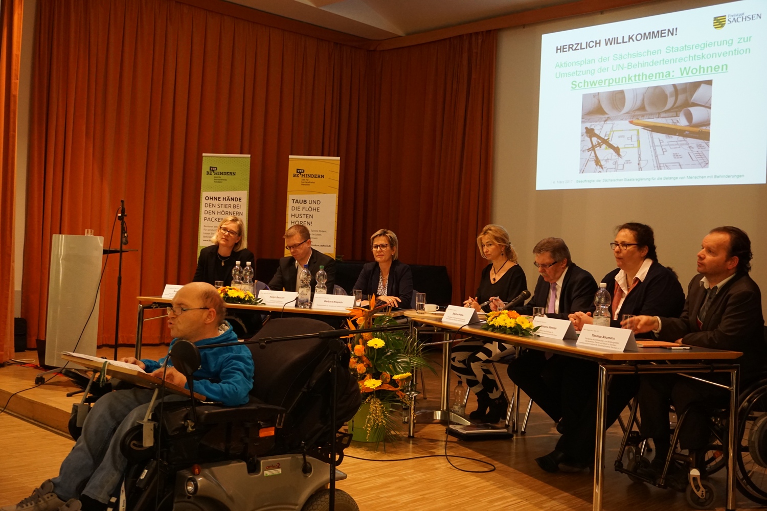 Unter dem Thema „Aktionsplan der Sächsischen Staatsregierung zur Umsetzung der UN-Behindertenrechtskonvention“ - Schwerpunkt „Wohnen“ wurde vor mehr als 100 Gästen aus Politik, Wirtschaft und Gesellschaft die vom Sächsischen Staatsministerium des Innern in Auftrag gegebene neue Studie „Bedarfsgerecht barrierefreier Wohnraum in Sachsen“ vorgestellt und diskutiert. Sie ist eine Maßnahme des Aktionsplans der Staatsregierung zur Umsetzung der UN-Behindertenrechtskonvention, der im vergangenen Jahr beschlossen wurde.