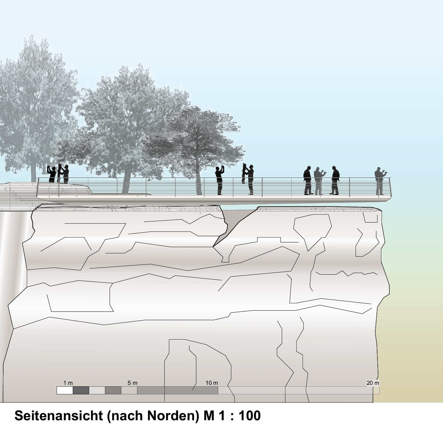 Im Modul 3 des Bauvorhabens soll eine neue Aussichtsplattform errichtet werden. Die Planungen sehen die Errichtung eines „schwebenden“ Steges vor, der sich lediglich im hinteren Bereich auf dem Felsen abstützt und im vorderen erodierten Bereich des Felsens in geringer Höhe frei über diesem schwebt. Das Erscheinungsbild des Steges gleicht sich an das Erscheinungsbild der bisherigen Basteiaussicht an. Bei der Konstruktion des Steges werden modernste Baumaterialien zum Einsatz gebracht. So werden für die Verschalung des Steges Elemente aus dem von der TU Dresden entwickelte Textilbeton zum Einsatz kommen. Der Steg wird barrierefrei an den bestehenden rückwärtigen Teil der Basteiansicht angebunden.