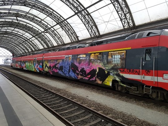 Die Staatsanwaltschaft Dresden und die Bundespolizeiinspektion Dresden ermitteln in einem Großverfahren gegen acht Beschuldigte (23, 23, 24, 25, 25, 26, 29 und 31 Jahre) wegen Sachbeschädigung. Den Beschuldigten liegt zur Last, in insgesamt 78 Fällen überwiegend im Stadtgebiet von Dresden unerlaubt großflächig Graffiti an Eisenbahnwaggons angebracht und hier-durch einen Gesamtschaden von ca. 220.000,00 EUR verursacht zu haben. Geschädigt wurden hauptsächlich regionale Bahnverkehrsunternehmen wie die Deutsche Bahn AG, die ehemalige Städtebahn Sachsen, die Transdev Mitteldeutschland GmbH, die ITL Eisenbahngesellschaft mbH sowie die DB Cargo AG.