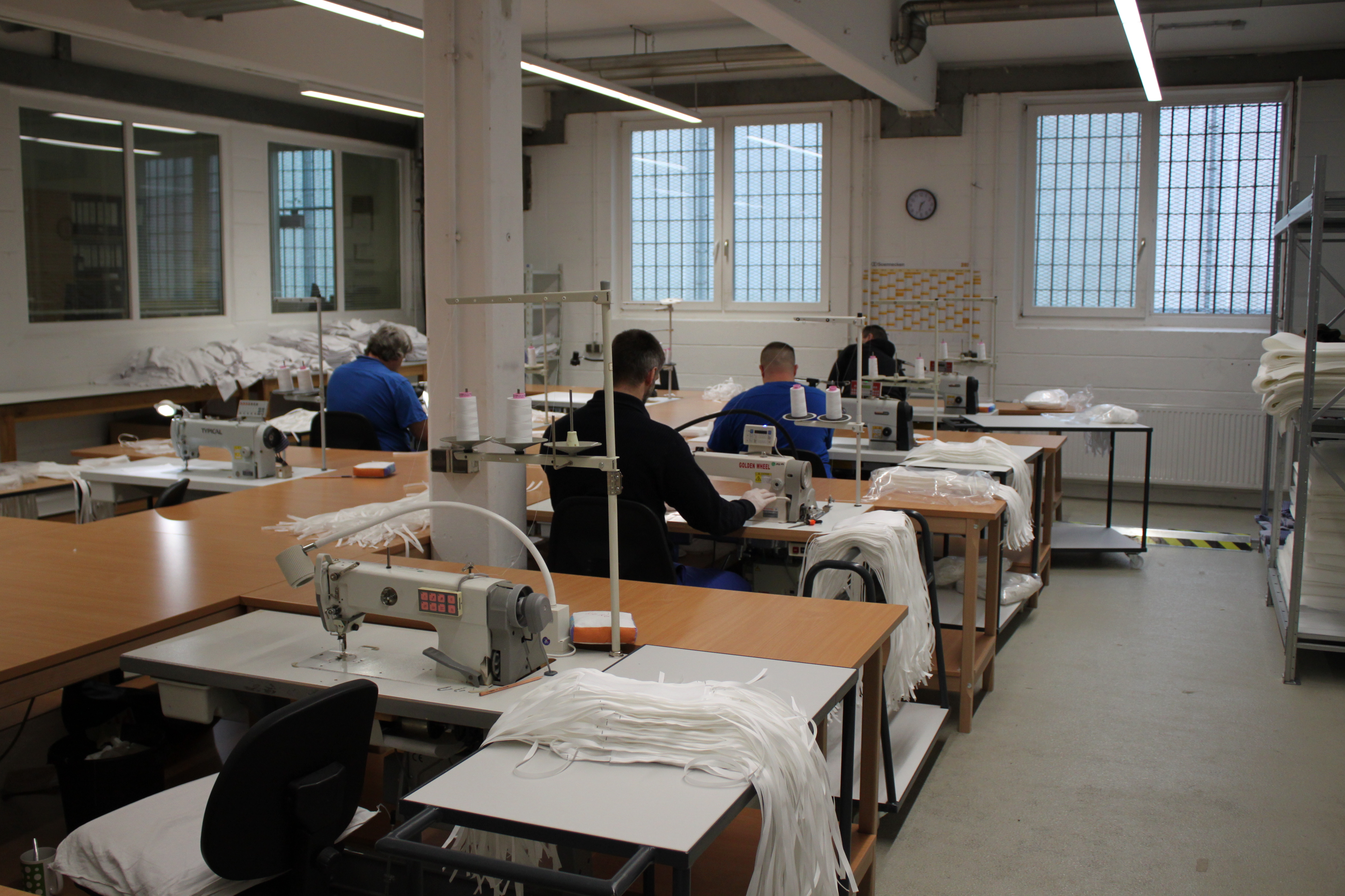Die Näherei der Justizvollzugsanstalt Chemnitz stellt seit letzter Woche für das Deutsche Rote Kreuz 15.000 Stück Mund-Nase-Schutzmasken aus medizinischem Vlies her und unterstützt damit die Mitarbeiter des DRK-Rettungsdienstes Chemnitz sowie des DRK-Rettungszweckverbandes Chemnitz/Erzgebirge bei der Aufrechterhaltung der Einsatzbereitschaft. Auch für das Polizeiverwaltungsamt werden 14.000 Schutzmasken genäht.